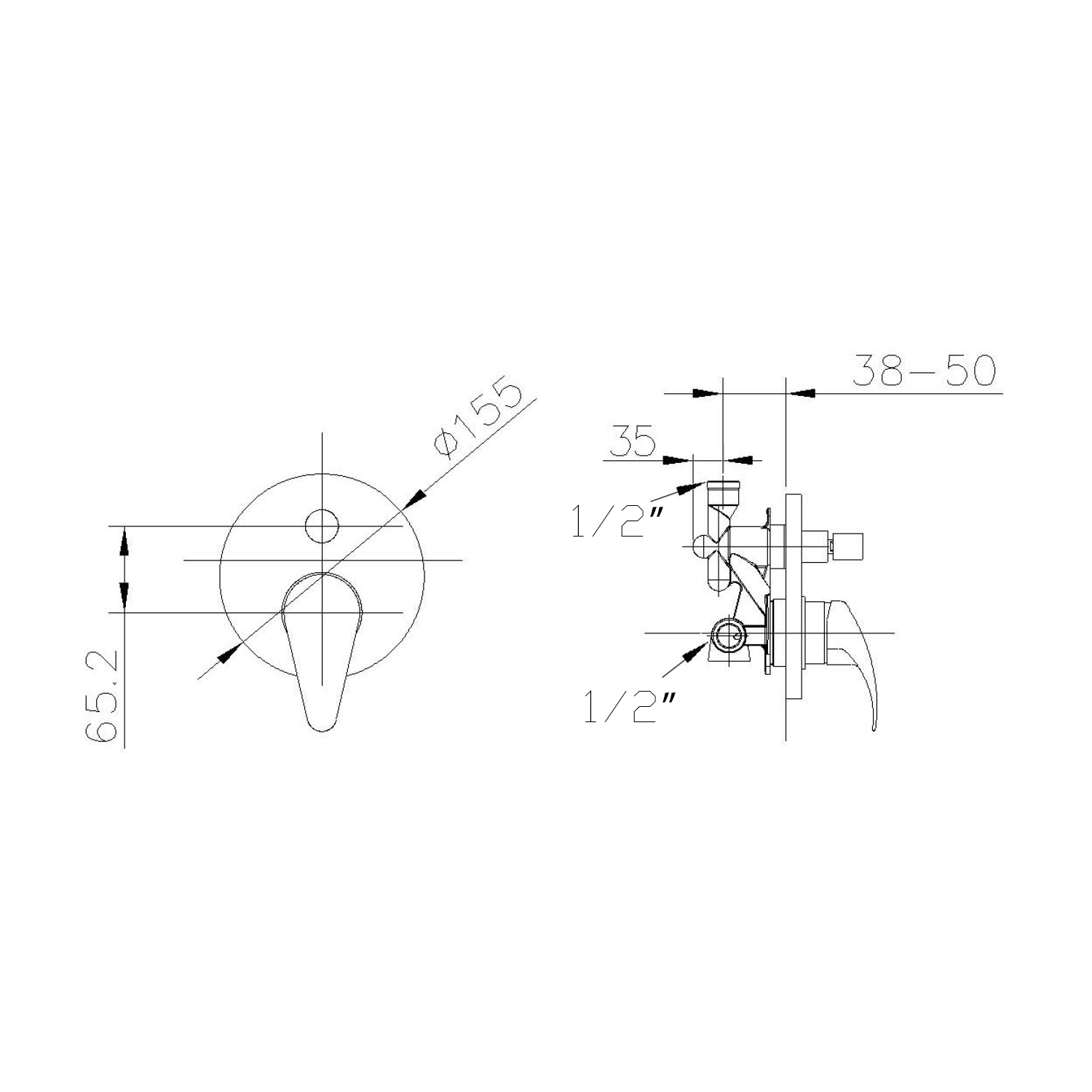 KA42 KAI falba süllyesztett zuhanycsaptelep, 2-irányú váltóval, zuhanyszett nélkül, króm