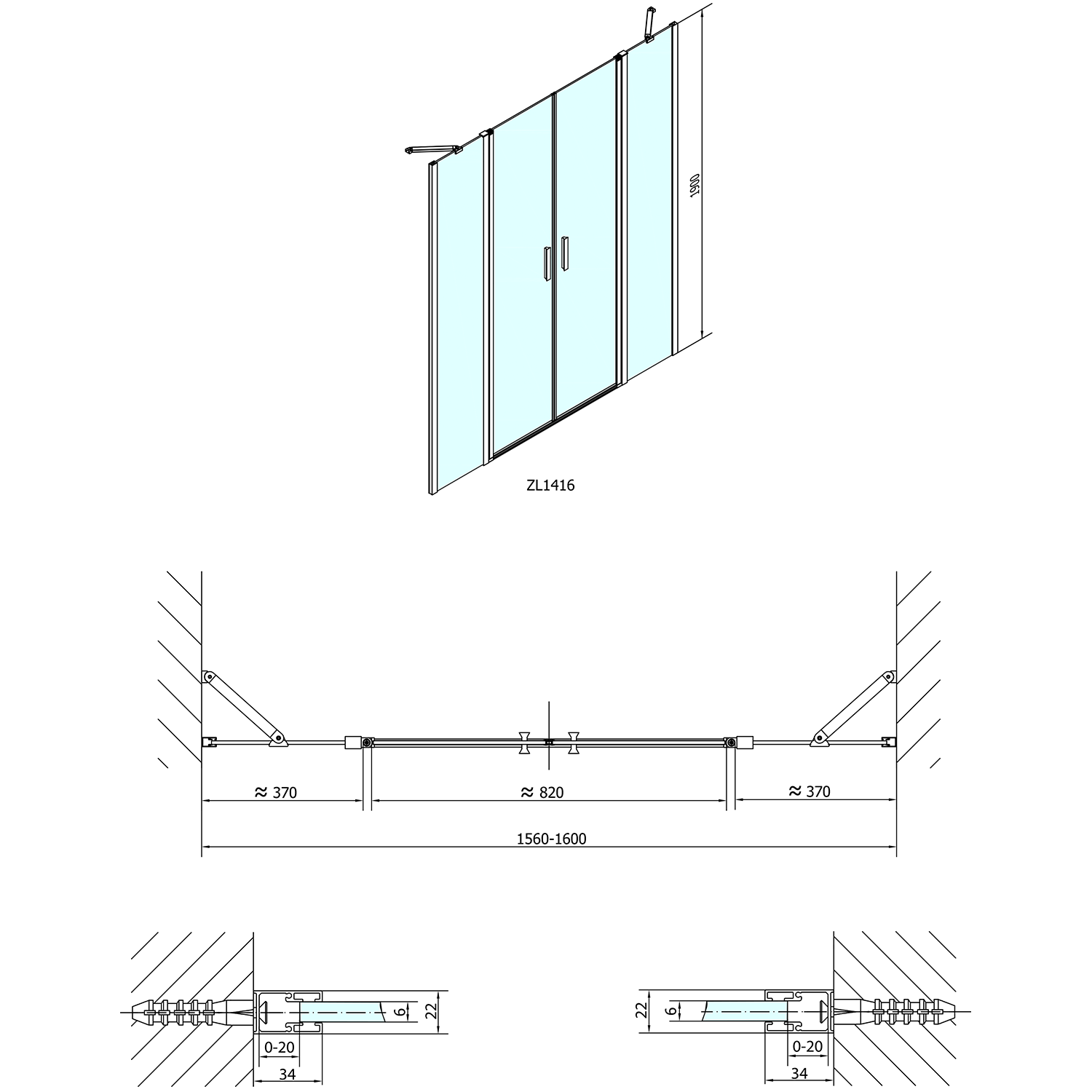 ZL1416 POLYSAN ZOOM LINE duplaszárnyas nyílóajtó, 1600mm, transzparent üveg, króm
