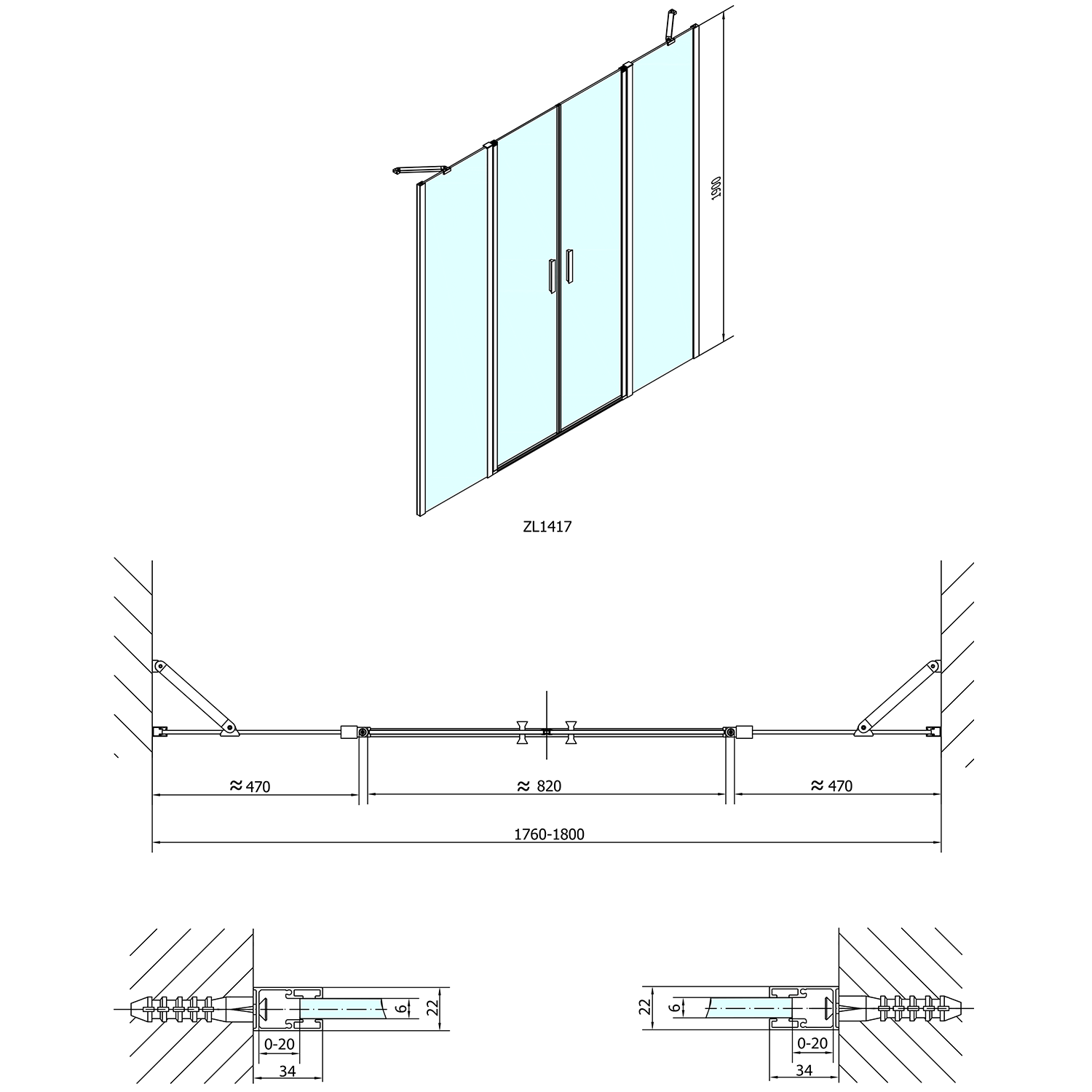 ZL1390ZL3210 POLYSAN ZOOM LINE zuhanyajtó és oldalfal, jobbos/balos, 900x1000mm, transzparent, króm