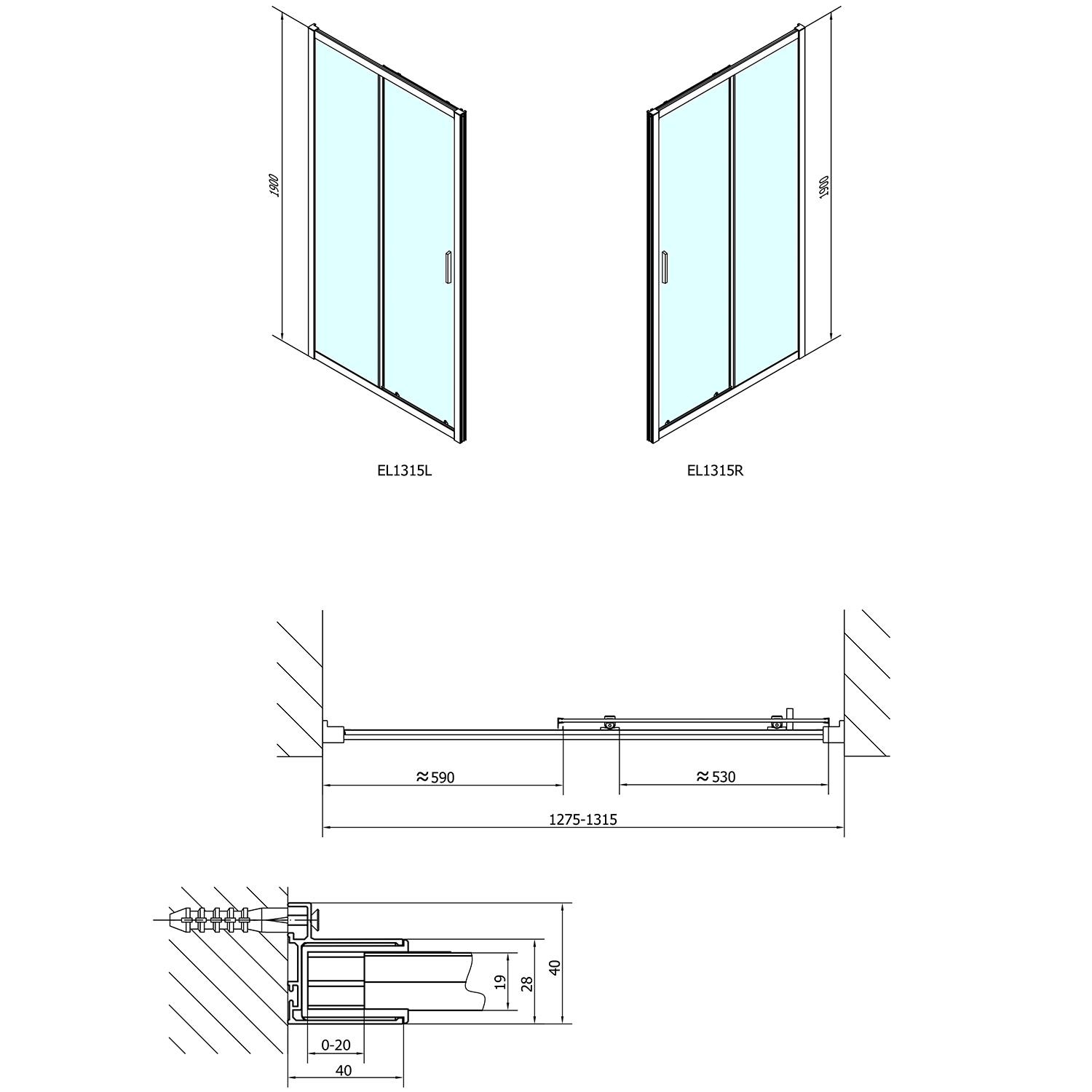 EL1215EL3315 POLYSAN EASY LINE zuhanyajtó oldalfallal, jobbos/balos, 1200x900mm, transzparent üveg