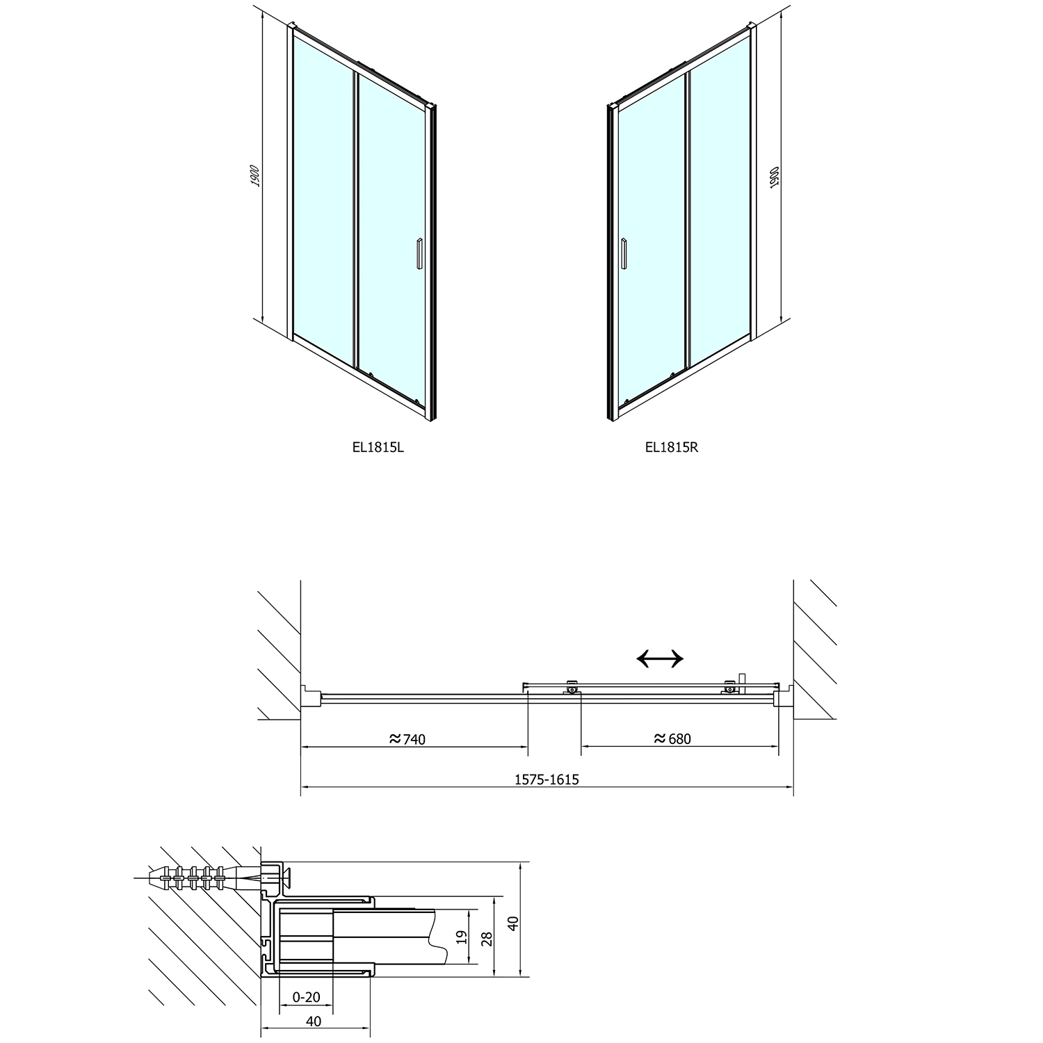 EL1815EL3215 POLYSAN EASY LINE zuhanyajtó oldalfallal, jobbos/balos, 1600x800mm, transzparent üveg