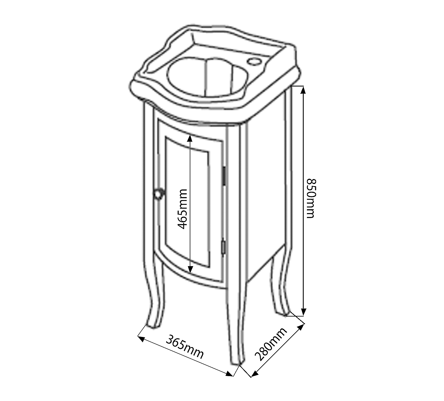 1641 RETRO Mosdótartó szekrény, 1 ajtóval, 36,5x85x29cm, antik fehér