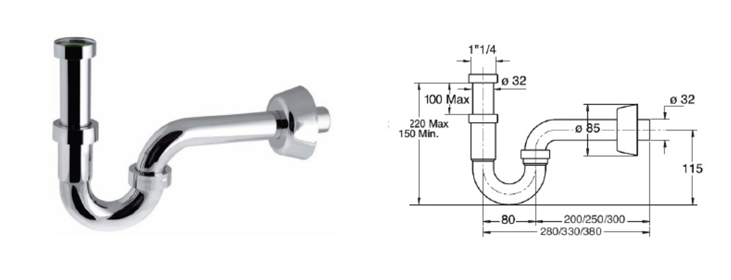 BONOMINI ROYAL FAMILY Mosdó szifon1'1/4 átmérő 32mm, króm (0220EC20K7)