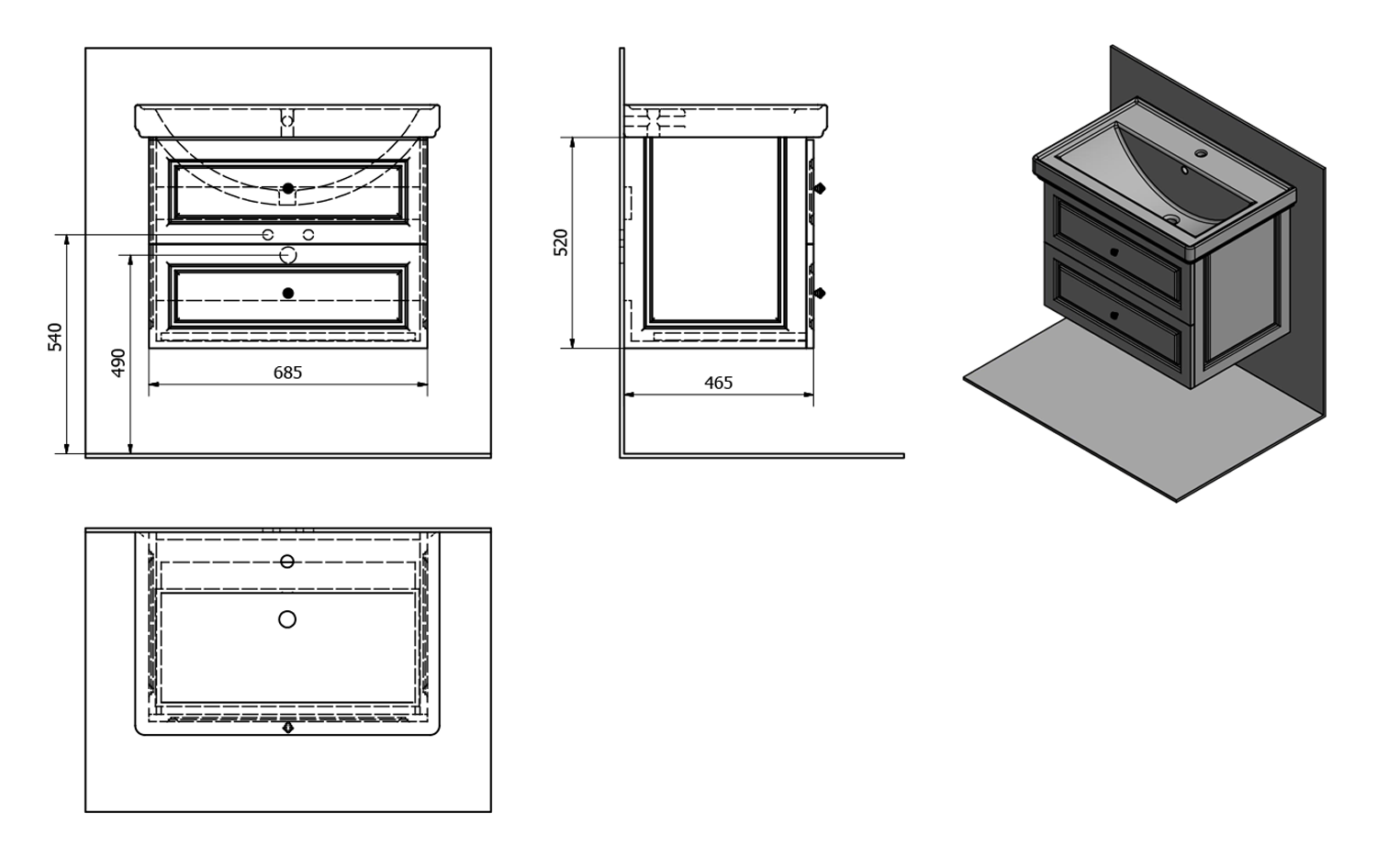 Furniture is equipped travels drawers with slow release and an automatic closing movement drawers. No more noisy closing.
