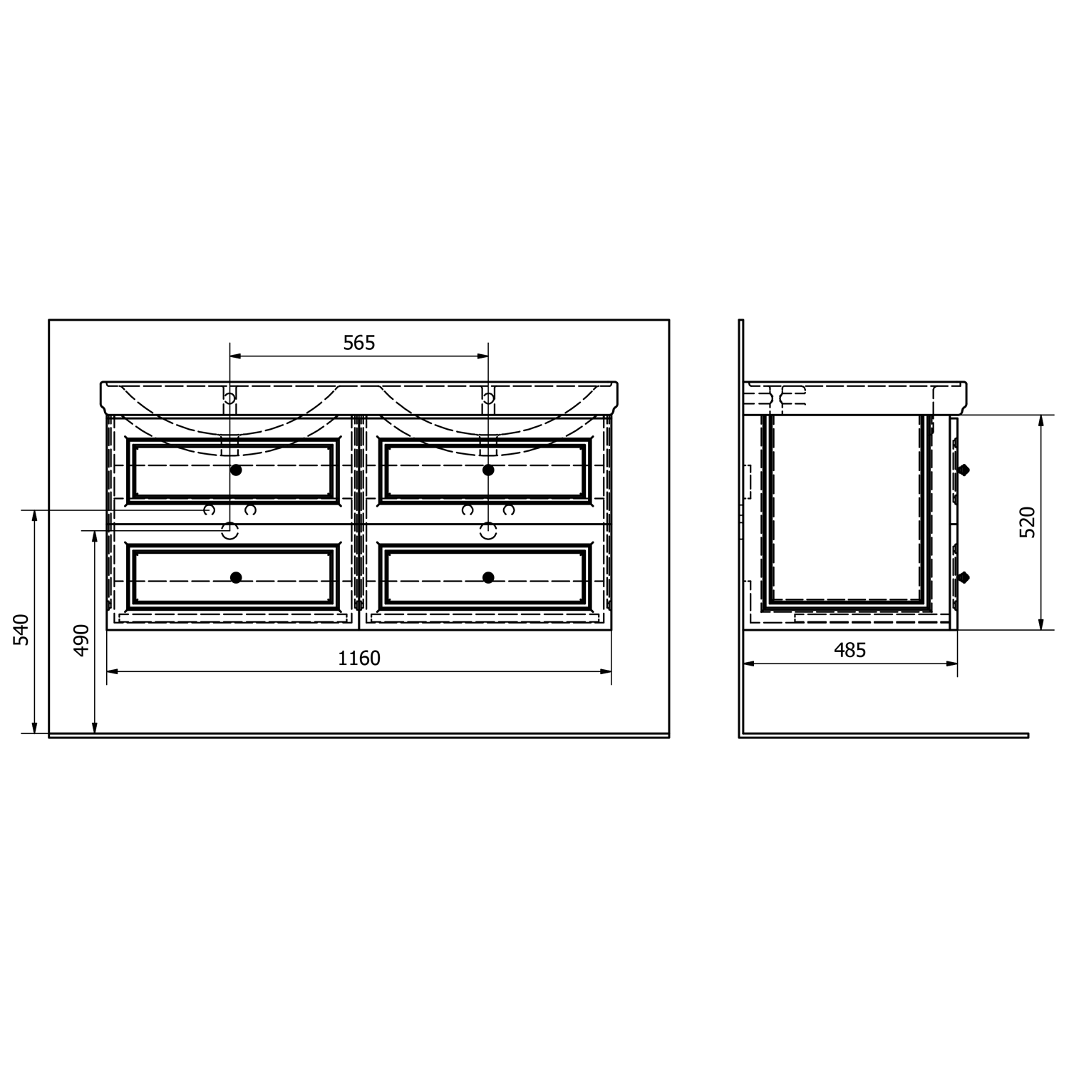 Furniture is equipped travels drawers with slow release and an automatic closing movement drawers. No more noisy closing.