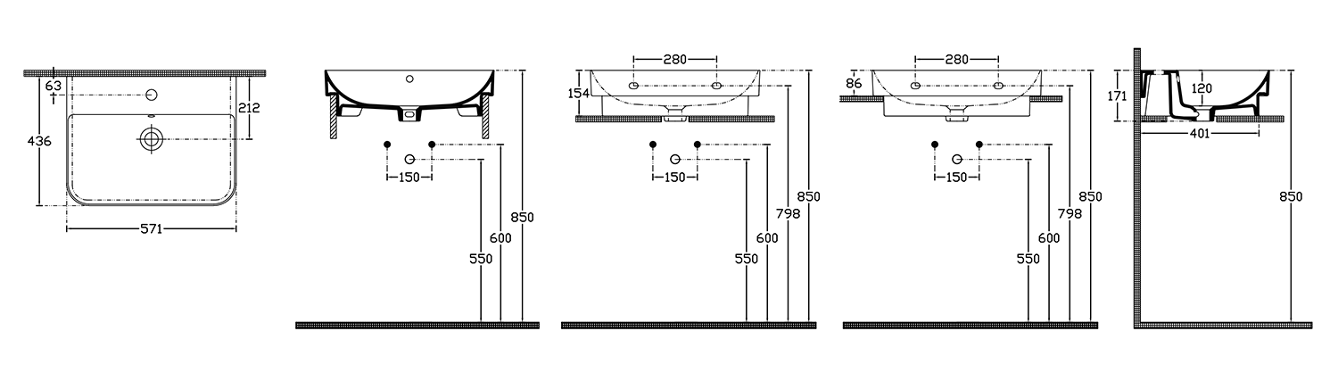 10SQ50057 ISVEA SOTT AQUA kerámiamosdó, 57x15,5x44cm