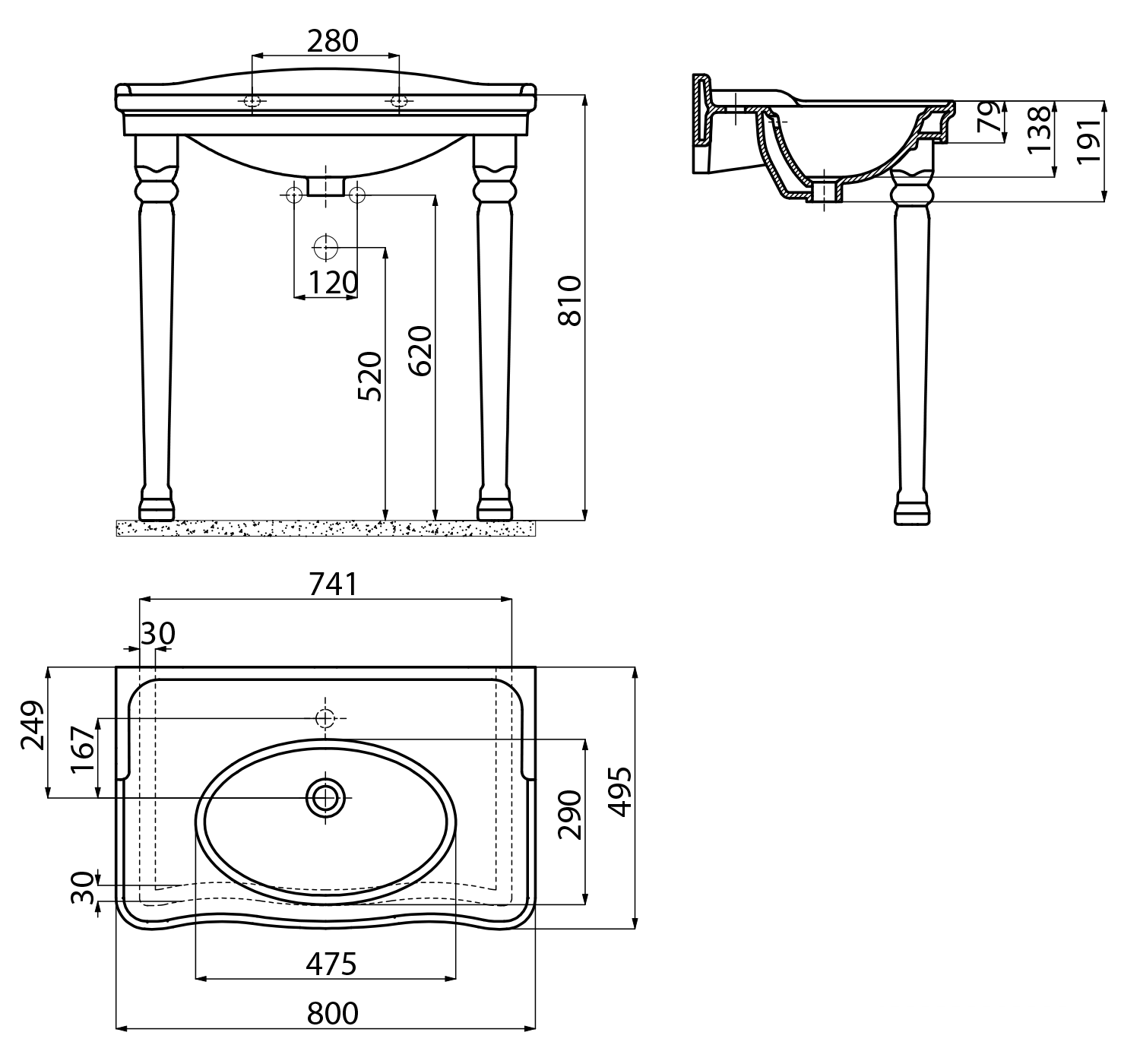 AN080 CREAVIT ANTIK kerámiamosdó, 80x50cm