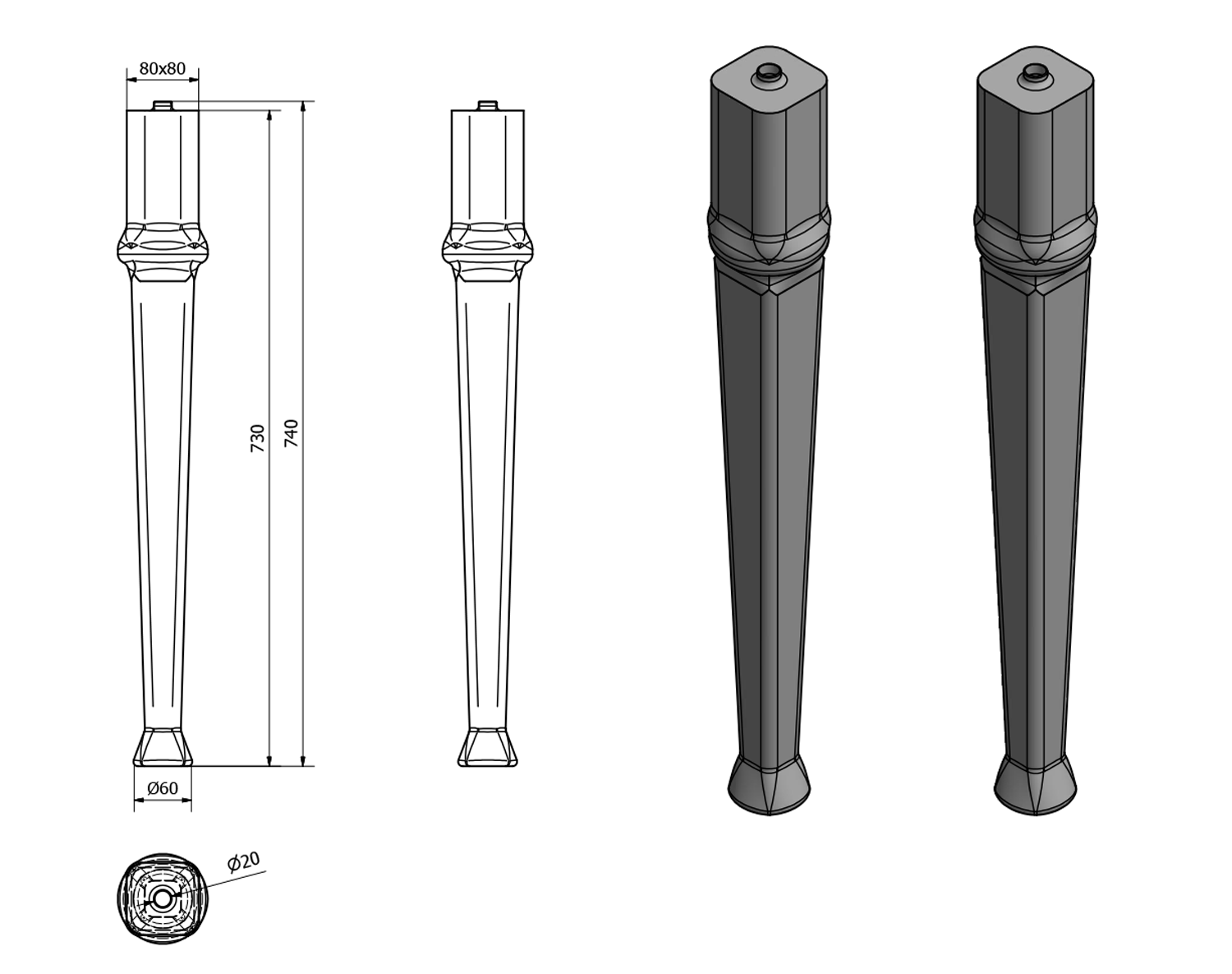 CREAVIT ANTIK Mosdó láb (2 db) (KL270)
