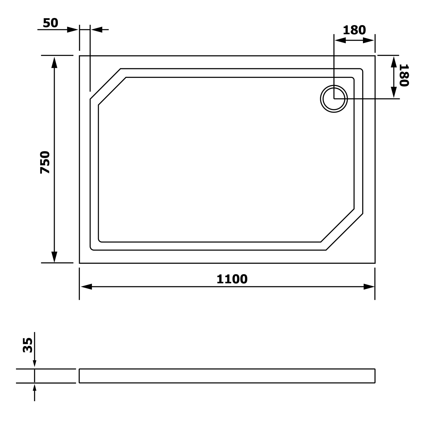 GELCO SARA öntöttmárvány zuhanytálca, 110x75x3,5cm (HS11075)