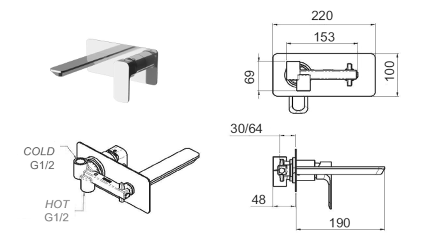 PY41 SPY falsík alatti zuhanycsaptelep, zuhanyszett nélkül, króm