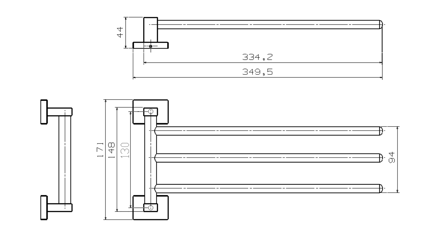 1416-16 AQUALINE APOLLO mozgatható tripla törölközőtartó, 334mm, króm