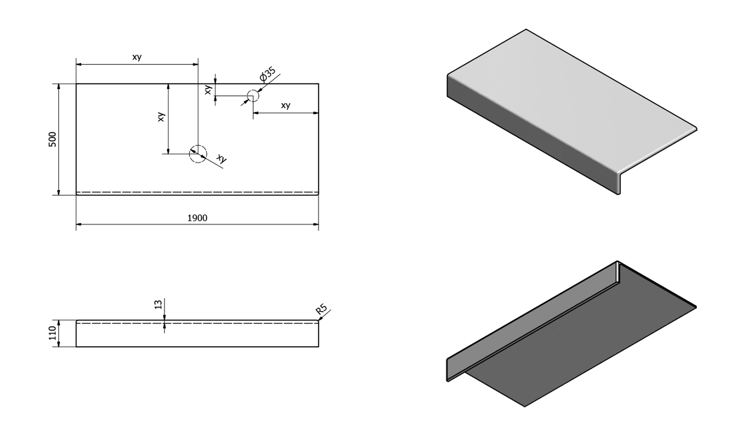 • Can be supplied with tap and waste holes according to drawing (can also be drilled at the installation site)