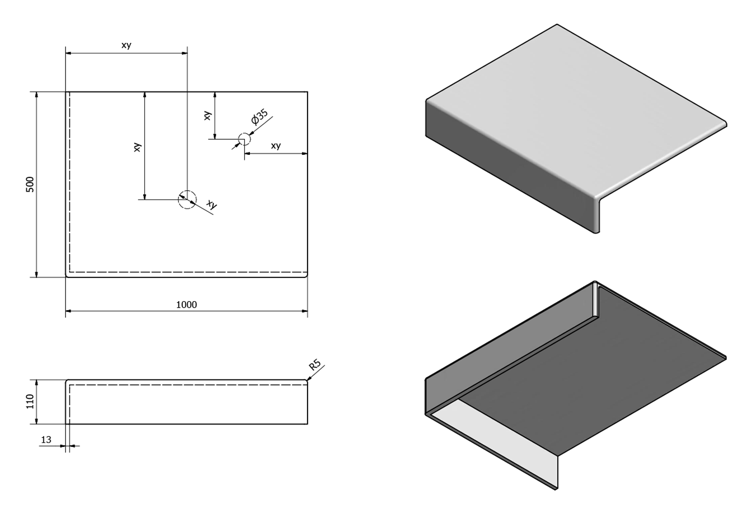 • Can be supplied with tap and waste holes according to drawing (can also be drilled at the installation site)