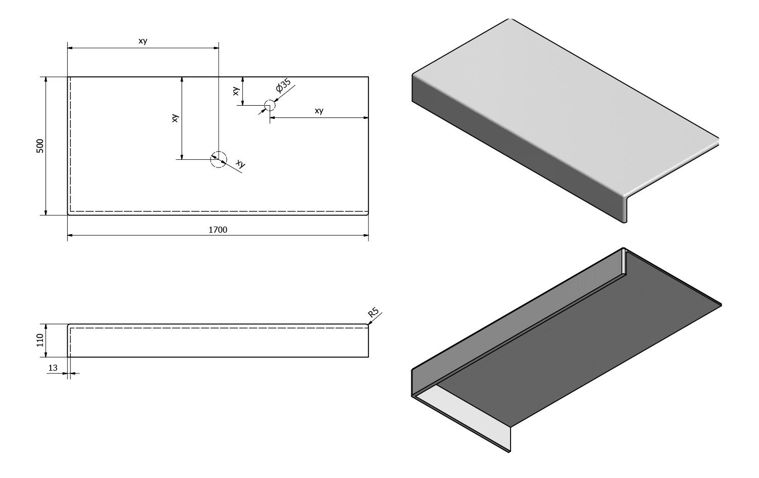 • Can be supplied with tap and waste holes according to drawing (can also be drilled at the installation site)