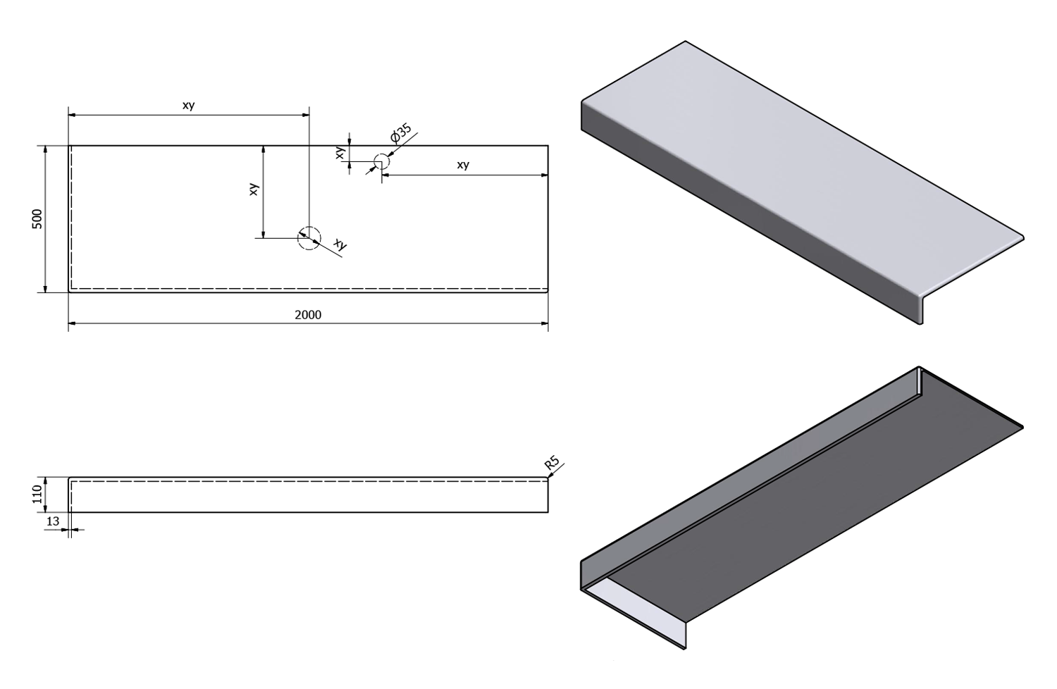 • Production of non-standard dimensions possible (max. 250x60 cm, perimeter collar 5-11 cm)