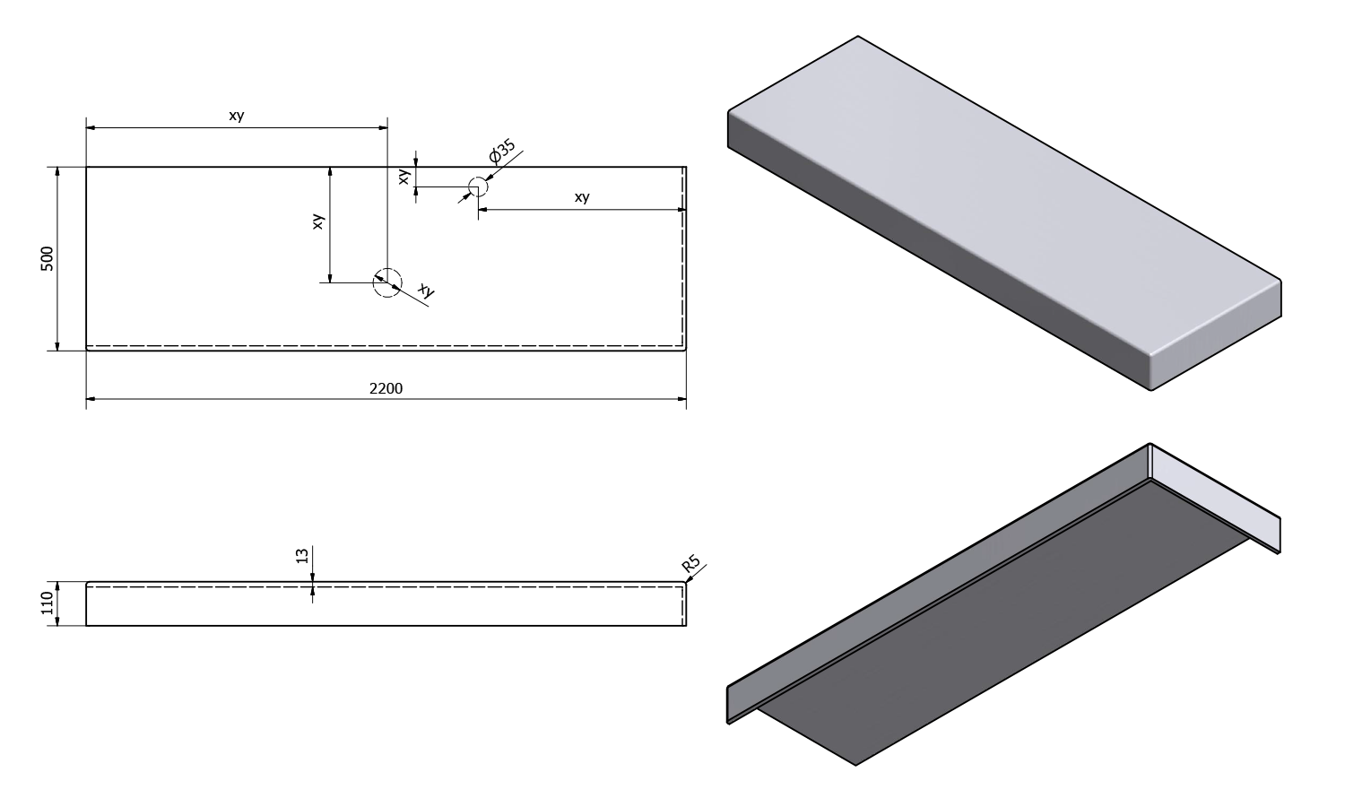 • Production of non-standard dimensions possible (max. 250x60 cm, perimeter collar 5-11 cm)