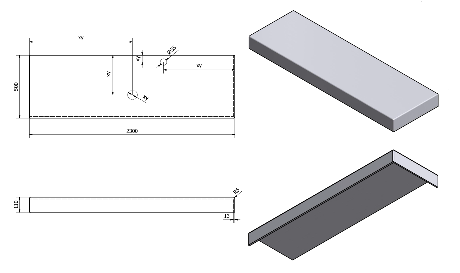 • Production of non-standard dimensions possible (max. 250x60 cm, perimeter collar 5-11 cm)