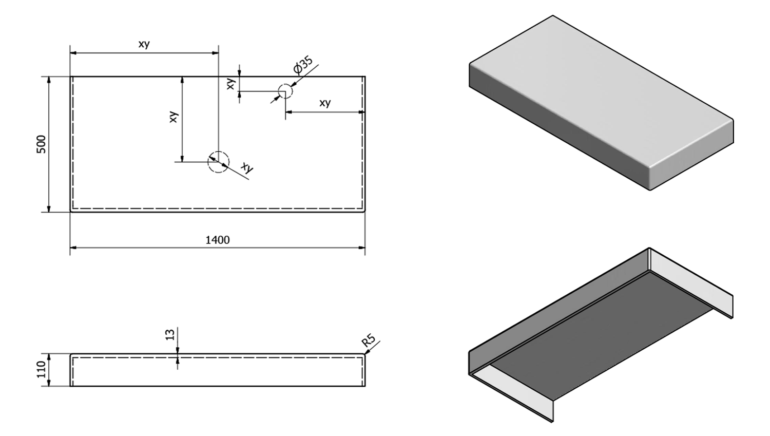 • Can be supplied with tap and waste holes according to drawing (can also be drilled at the installation site)
