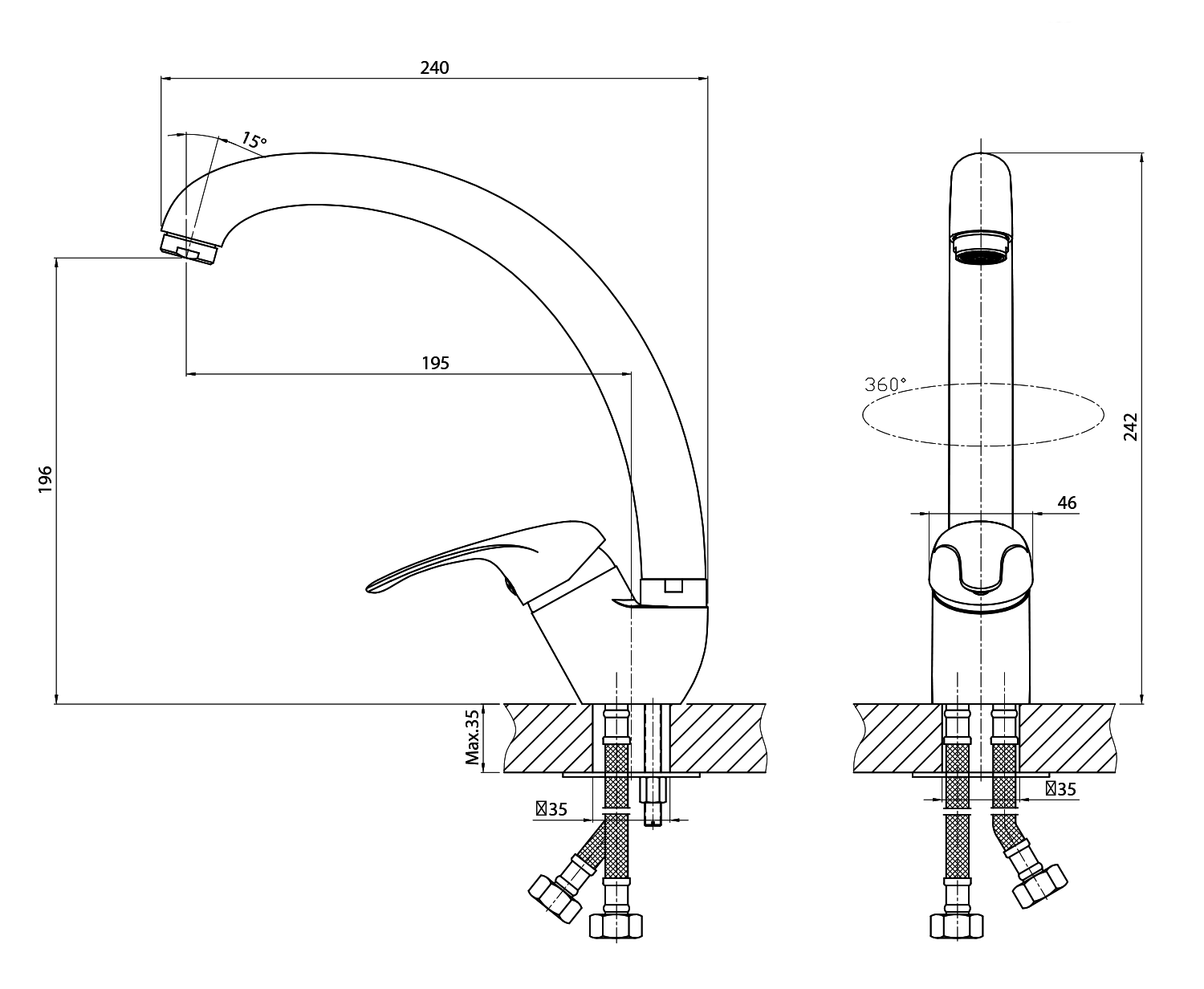 1107-65F KASIOPEA 35 mosogató-csaptelep flexibilis kifolyócsővel, króm/matt fekete