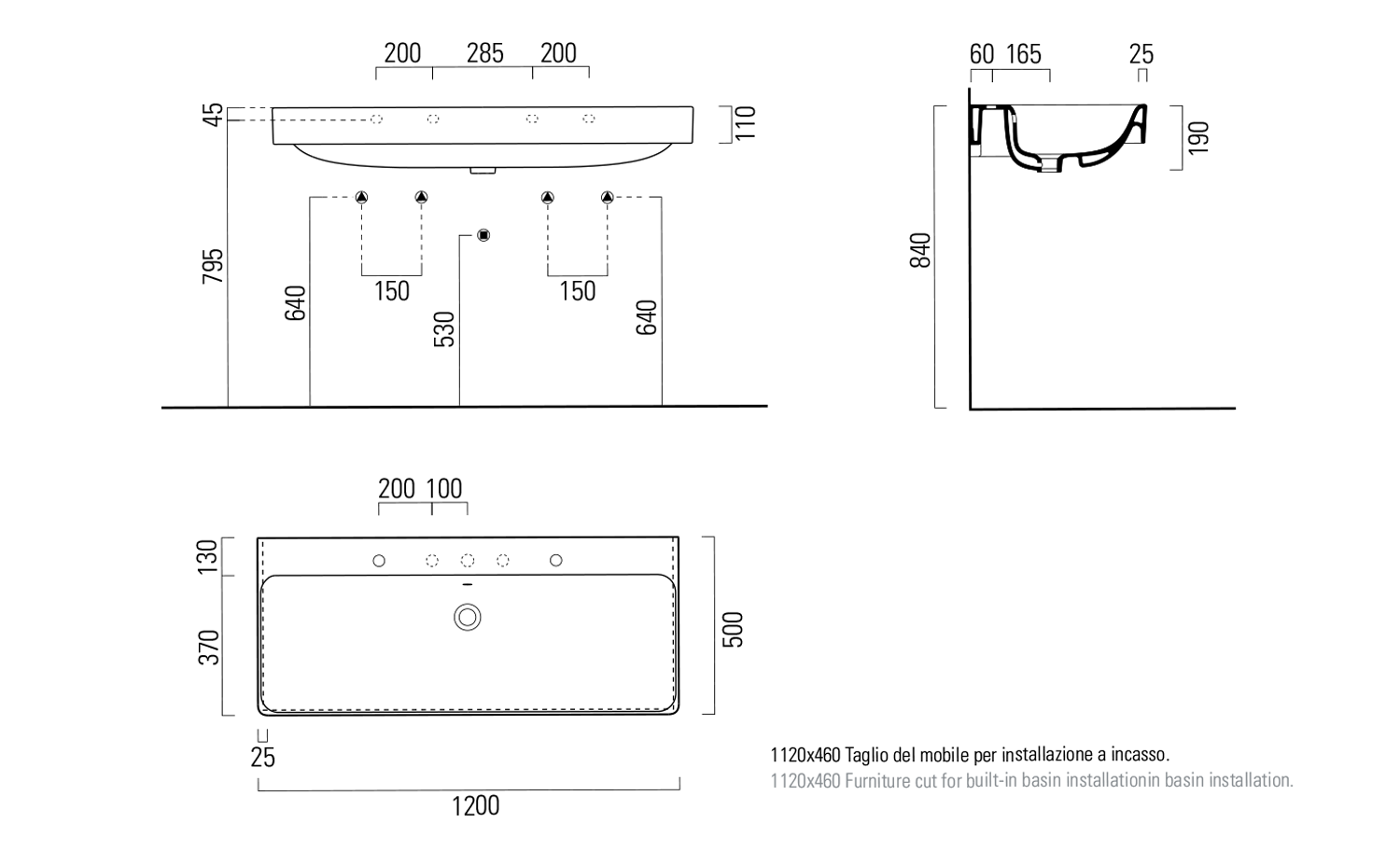 9024011 GSI SAND kerámiamosdó, csaplyuk nélkül, 120x50cm