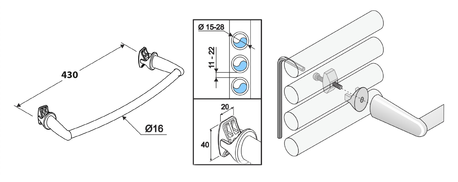 AQUALINE törölközőtartó íves radiátorra, 50cm, fehér (IDO-50)