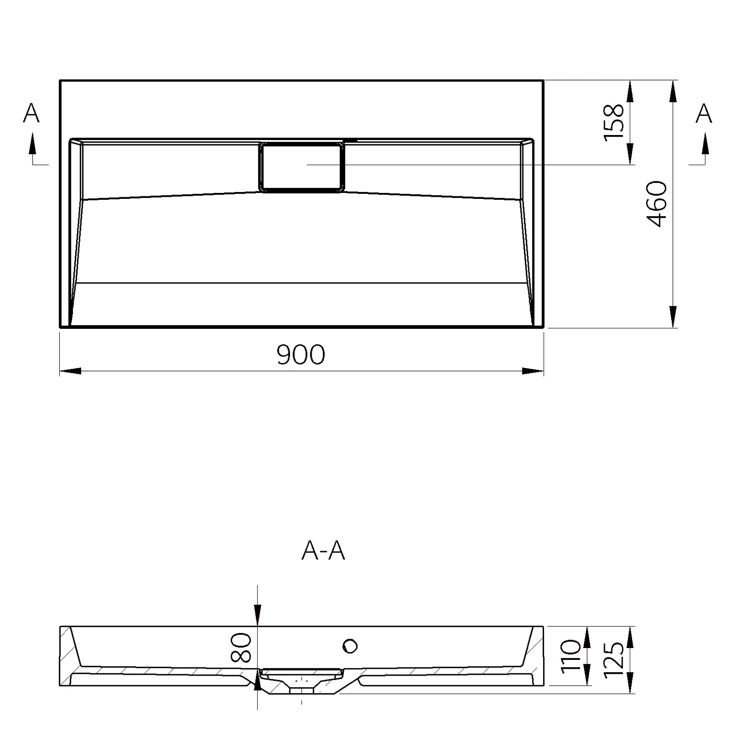 55032 AMUR öntöttmárvány mosdó, 90x9x46cm