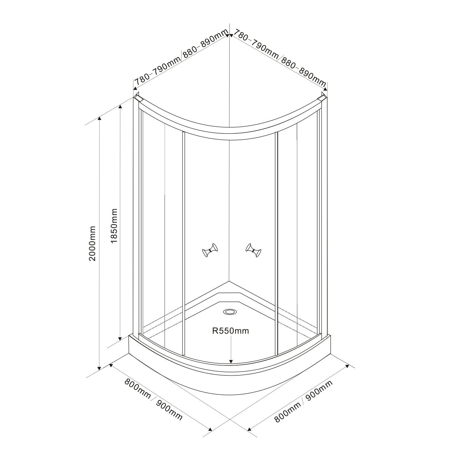 AQUALINE ARLEN íves zuhanykabin, 800x800mm, R55, BRICK üveg, fehér profil (YR800 helyett) (BTR800)