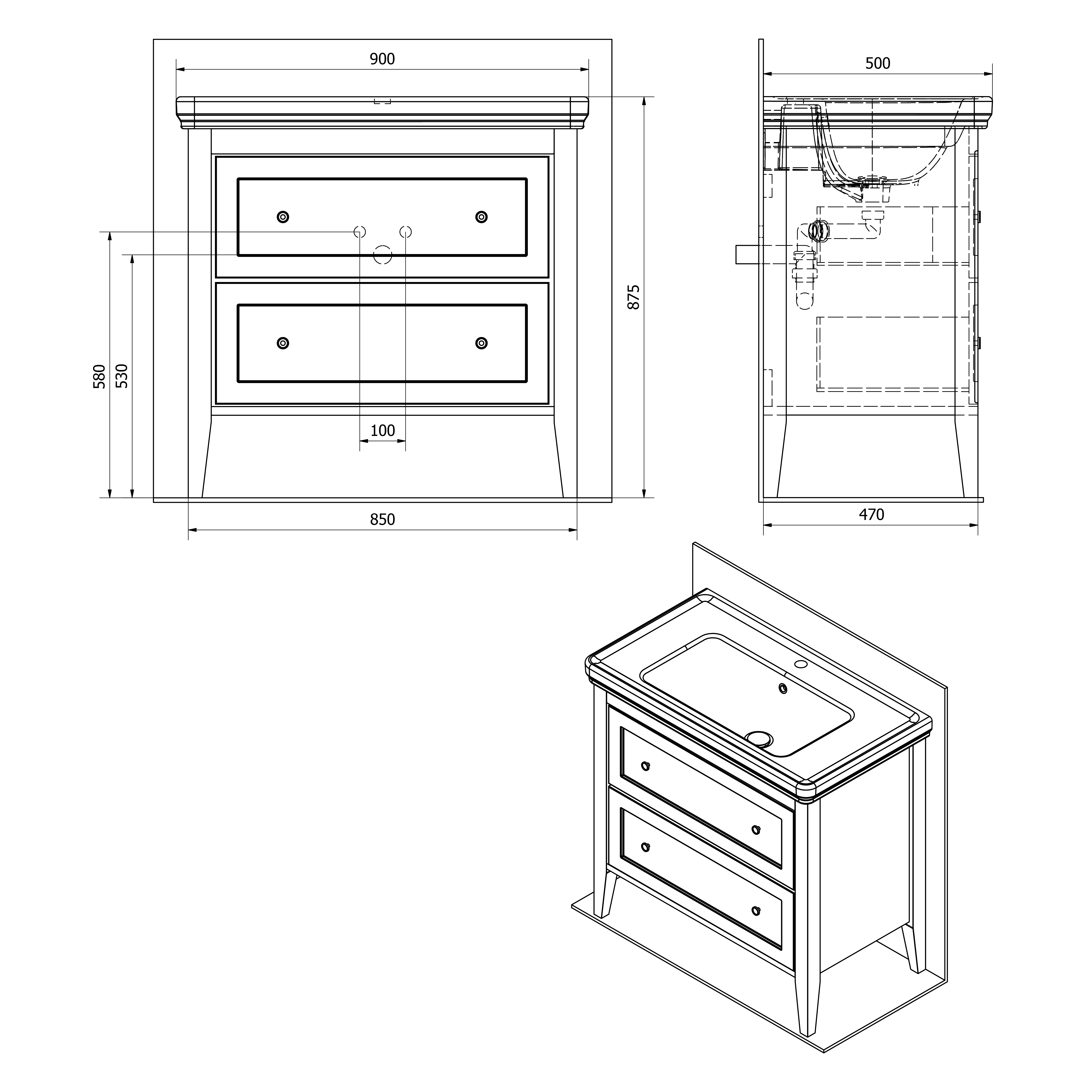 CR291 CROSS Mosdótartó szekrény, 2 fiókkal, 85x81x47cm, antik fehér