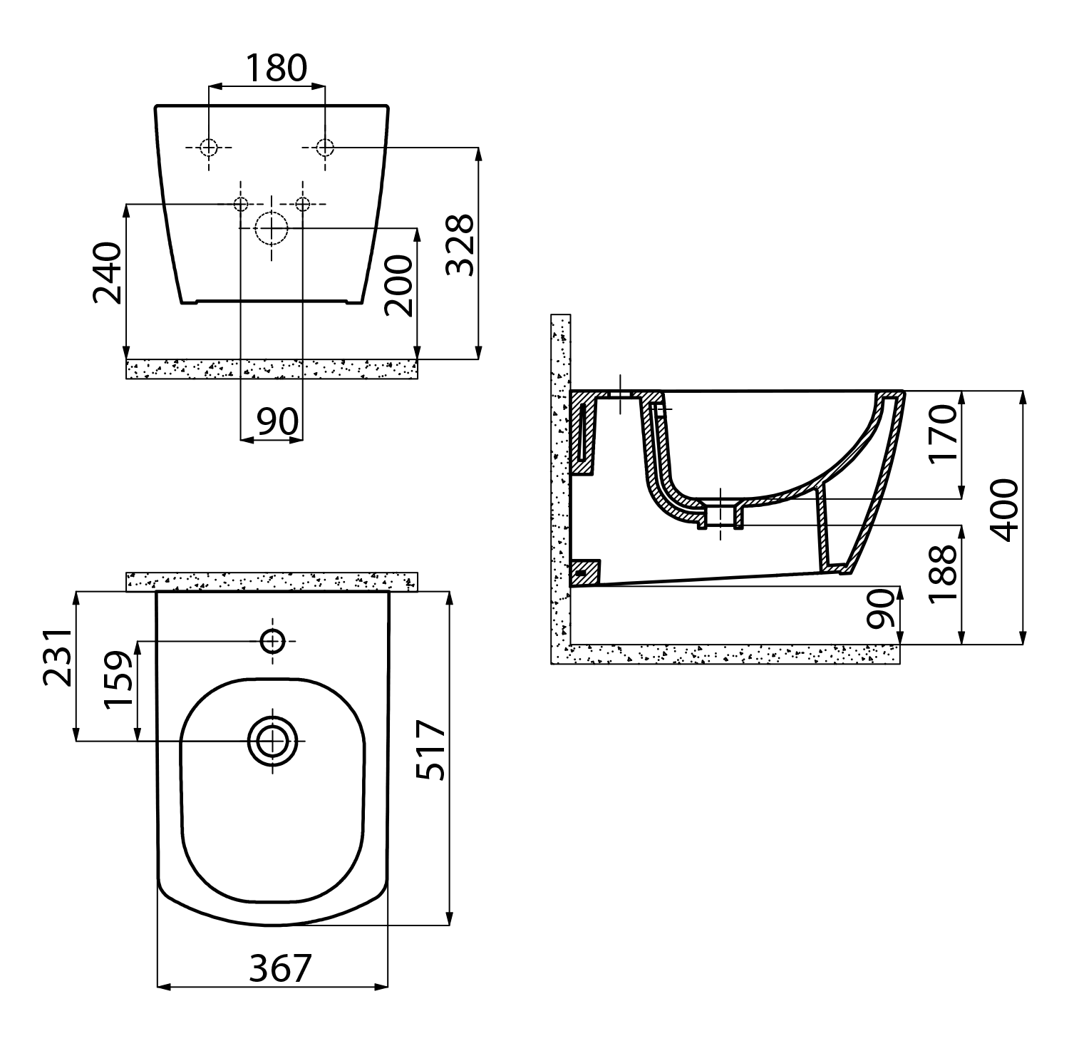 512501 KERASAN TRIBECA fali bidé, 35x31,5x54cm