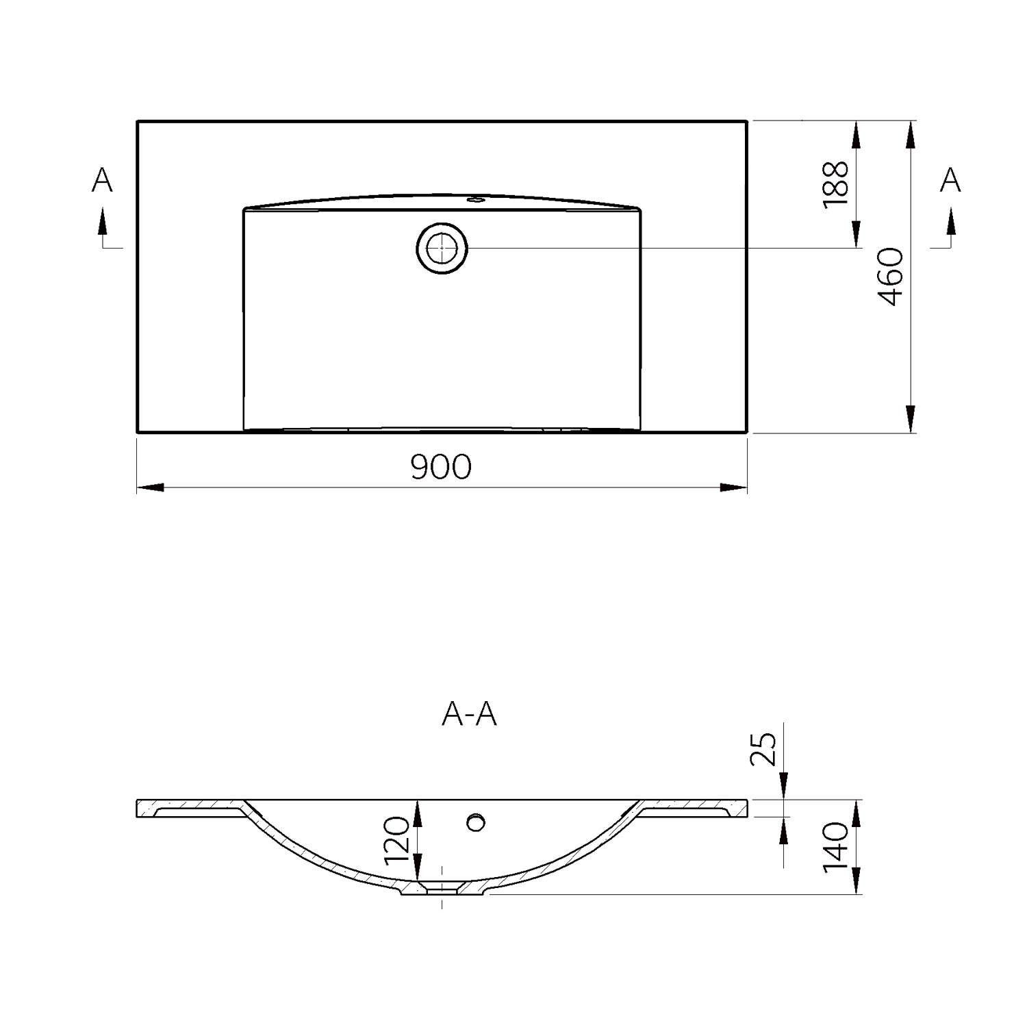 MA090 MARIA öntöttmárvány mosdó, 90x46cm