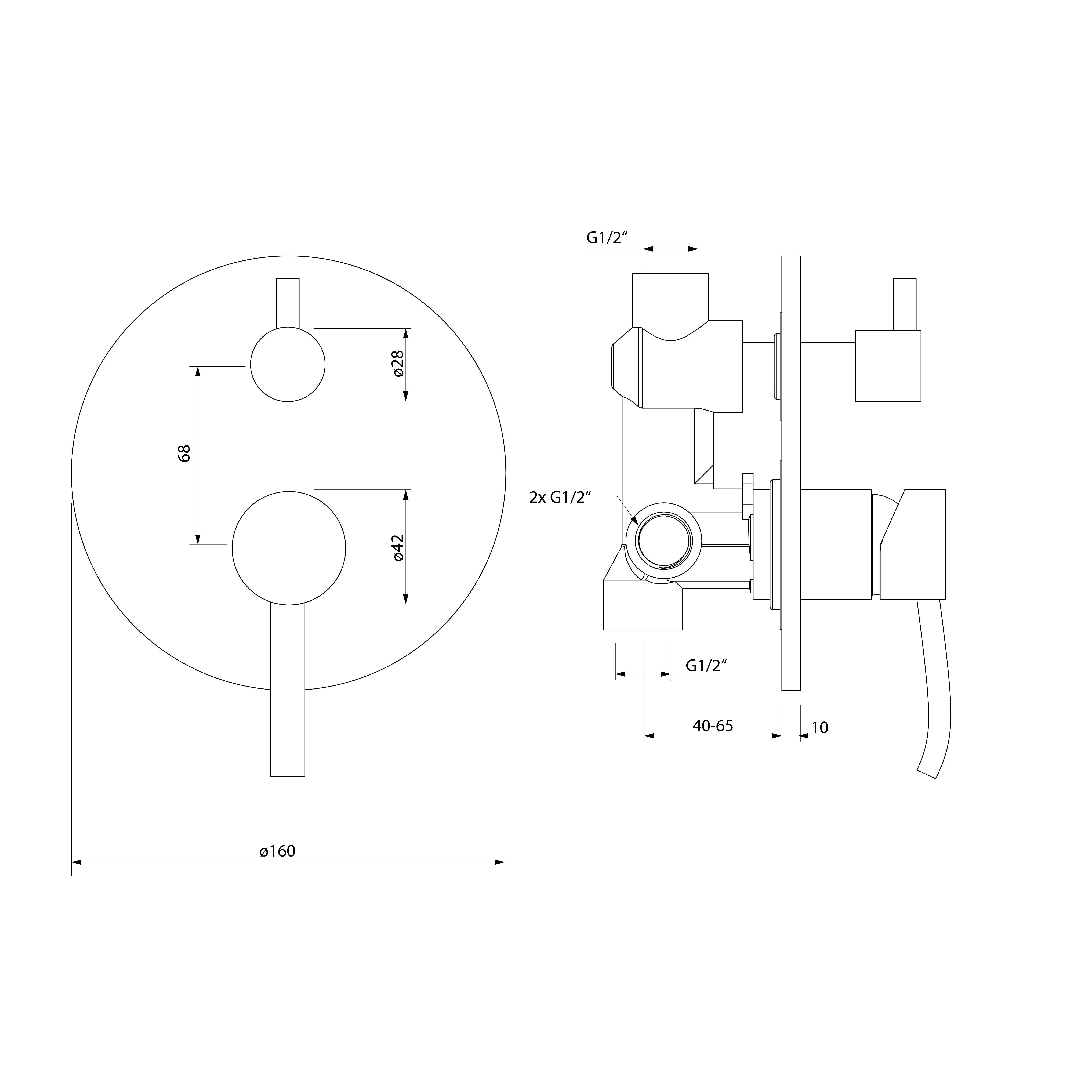 LK42 LUKA falba süllyesztett zuhanycsaptelep, 2-irányú váltóval, zuhanyszett nélkül, króm