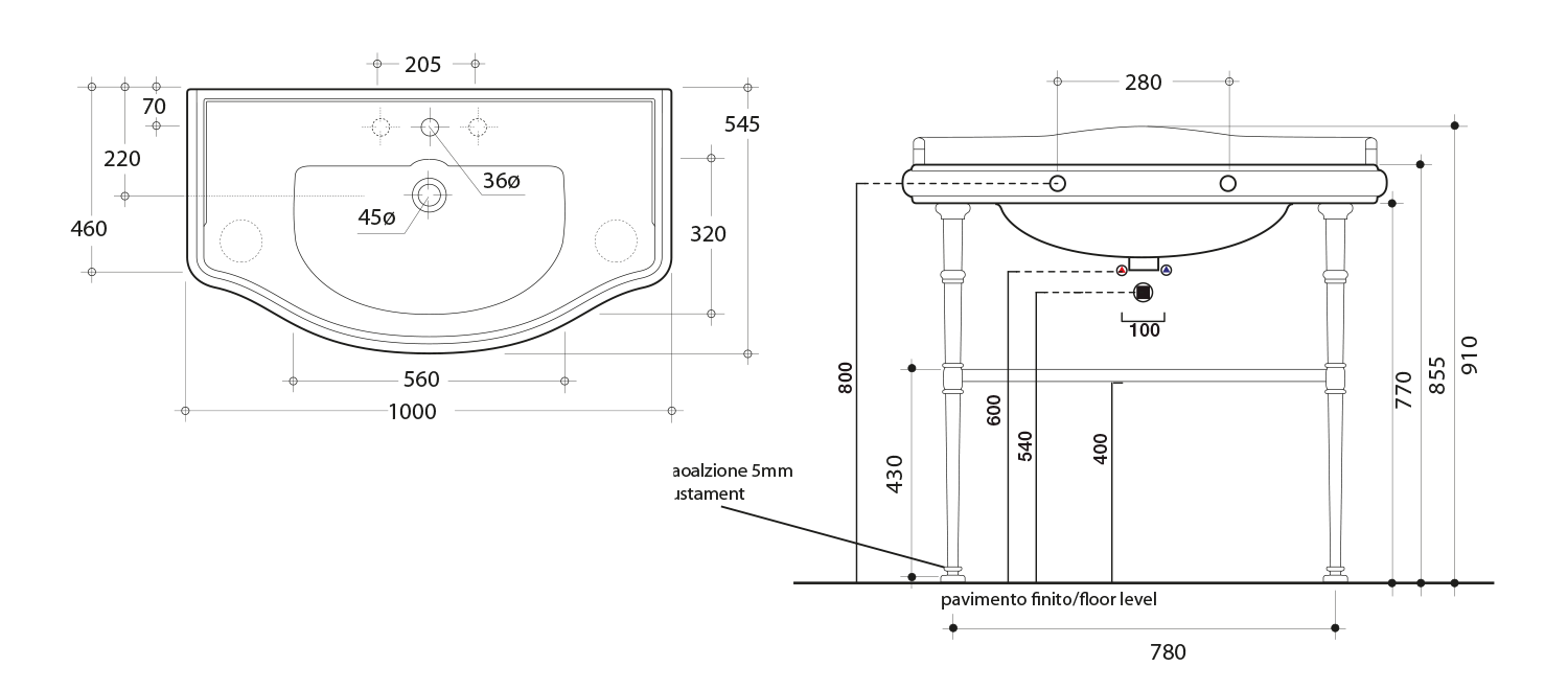 105001 KERASAN RETRO kerámiamosdó, 100x54,5cm (1db)