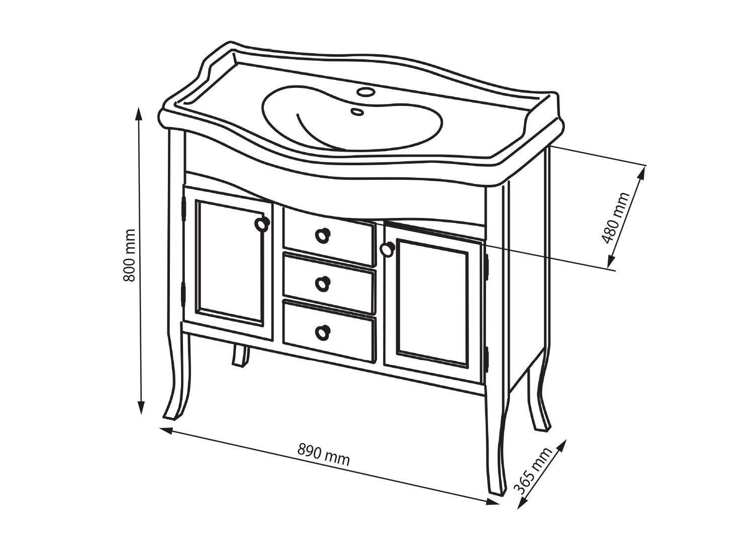 1621 RETRO mosdótartó szekrény, 2 ajtóval, 3 fiókkal, 89x80x48cm, antik fehér (1db)