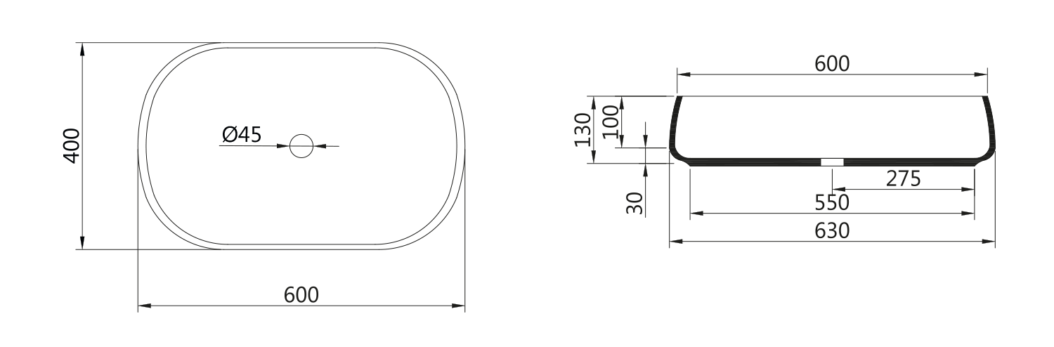 JUMPER kerámiamosdó, túlfolyó nélkül, 60x13x40cm (WH070)