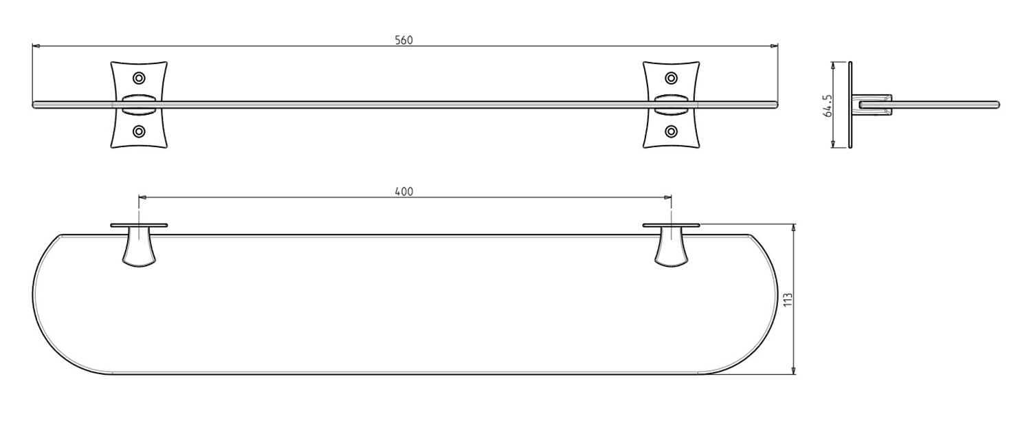 CC015 REBECCA polctartó, 560x113mm, tejüveg/fekete