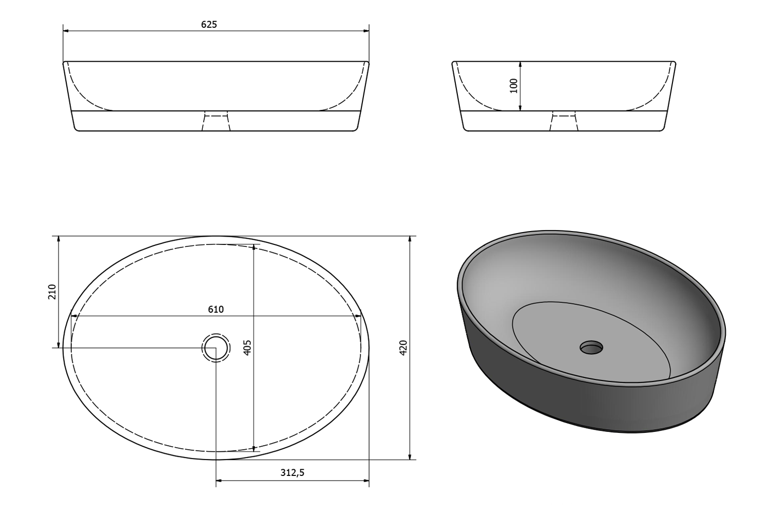 883411 GSI PURA kerámiamosdó, pultra helyezhető, 60x16x37cm, ExtraGlaze