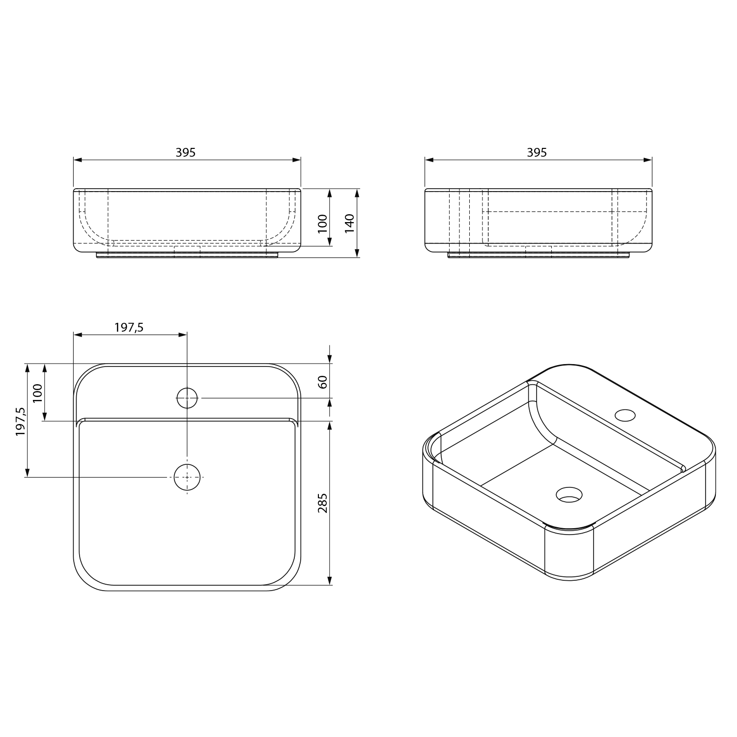 MOLVENO pultra szerelhető kerámiamosdó, túlfolyó nélkül, 39,5x39,5cm (AR453)