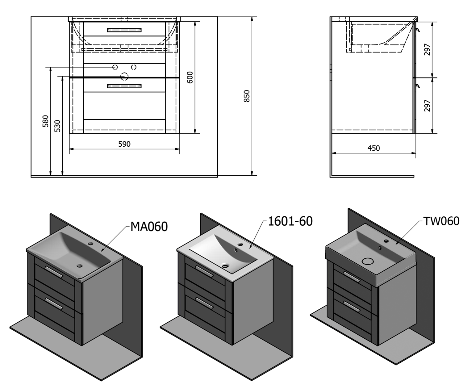 MA060-0 MARIA öntöttmárvány mosdó, furat nélkül 60x46cm