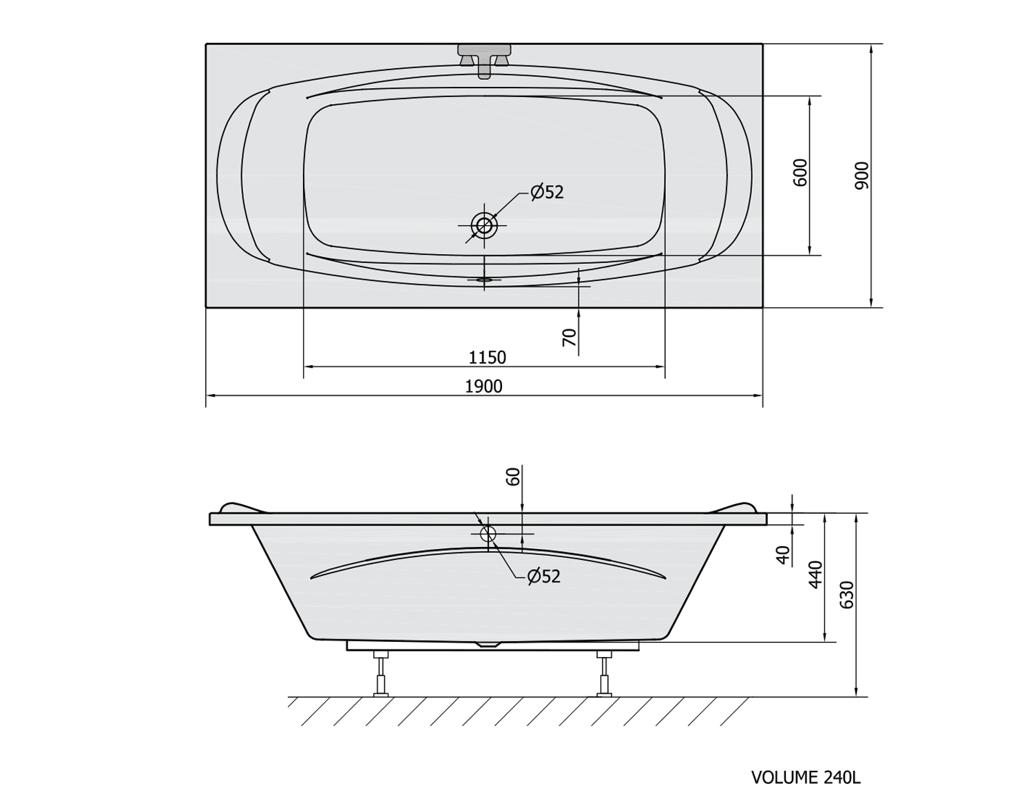 71607 POLYSAN MARLENE kád, 190x90x48cm