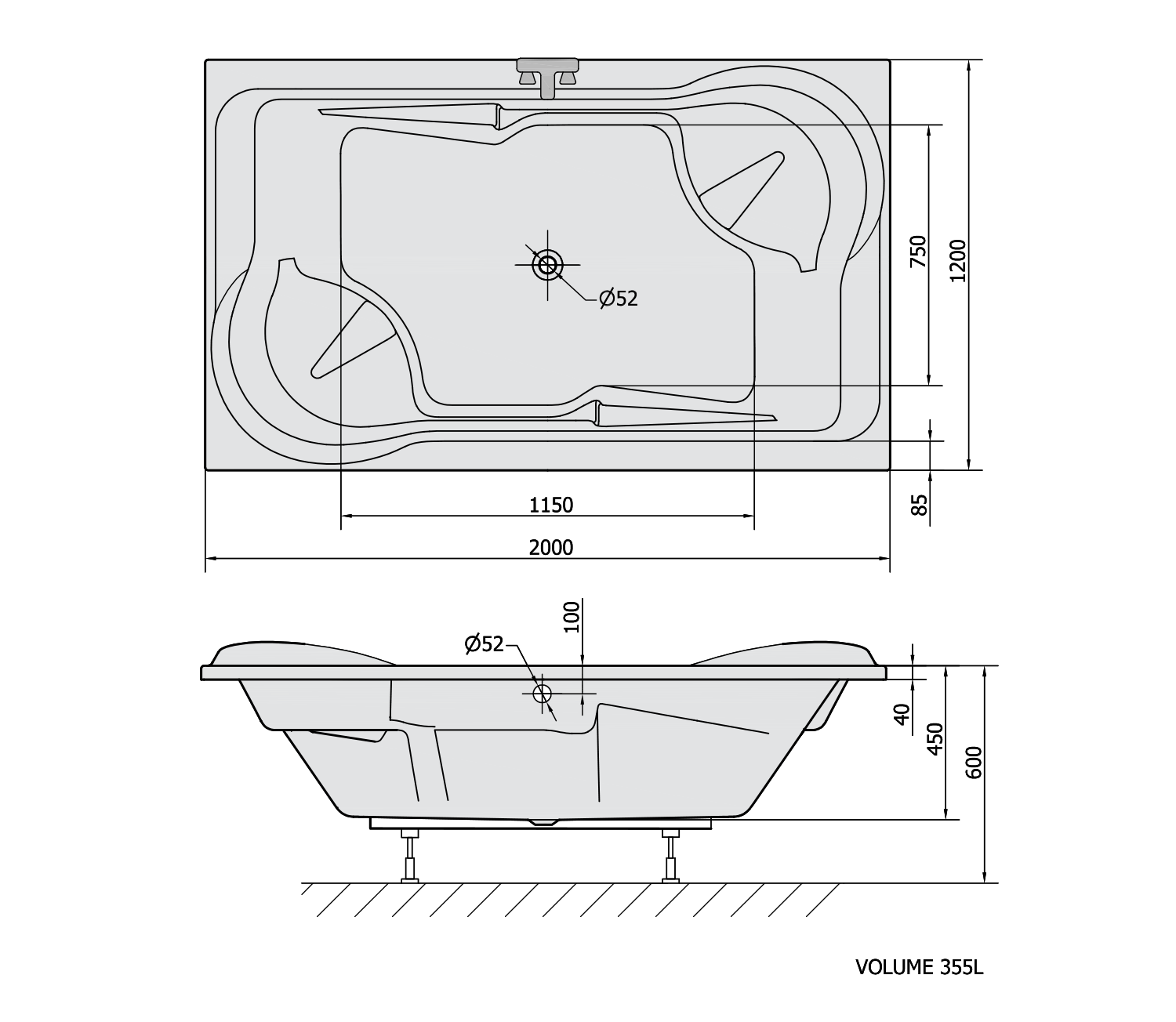 POLYSAN DUO kád lábszerkezettel, 200x120x45cm (16211)