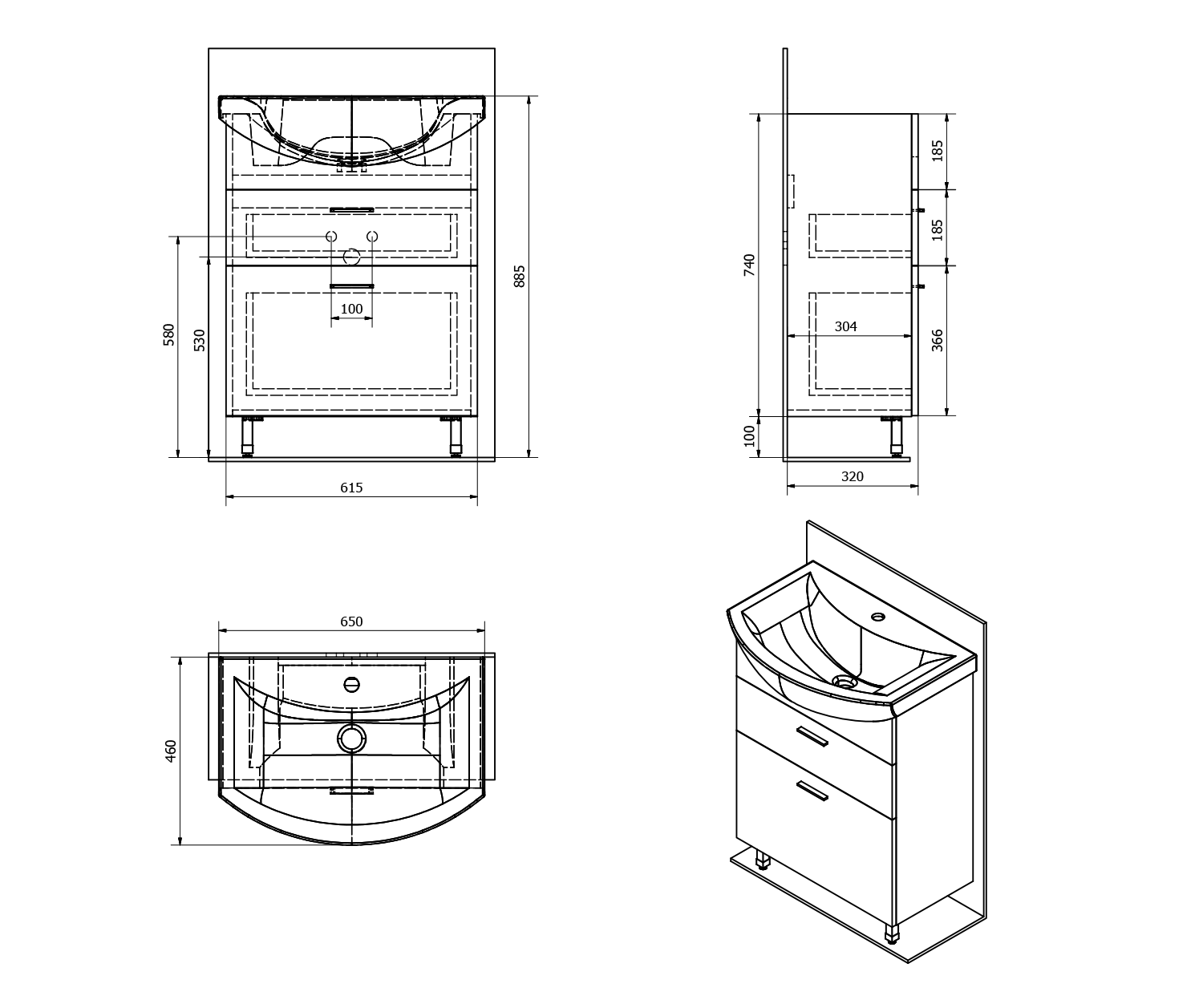 51061A AQUALINE ZOJA mosdótartó szekrény, 2 fiókos, 61,5x74x32cm, fehér