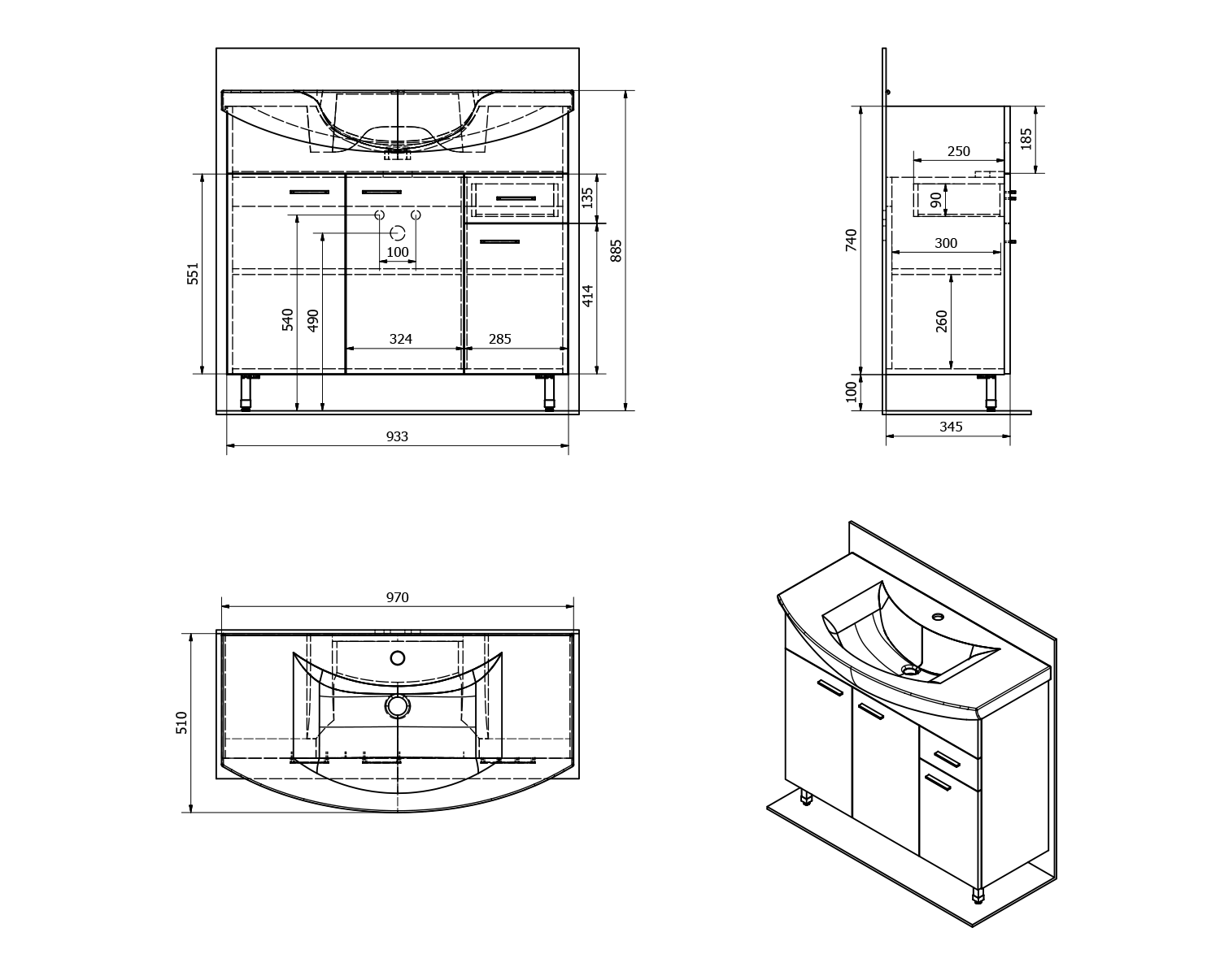 6095 AQUALINE ZERO kerámiamosdó, 97x51cm