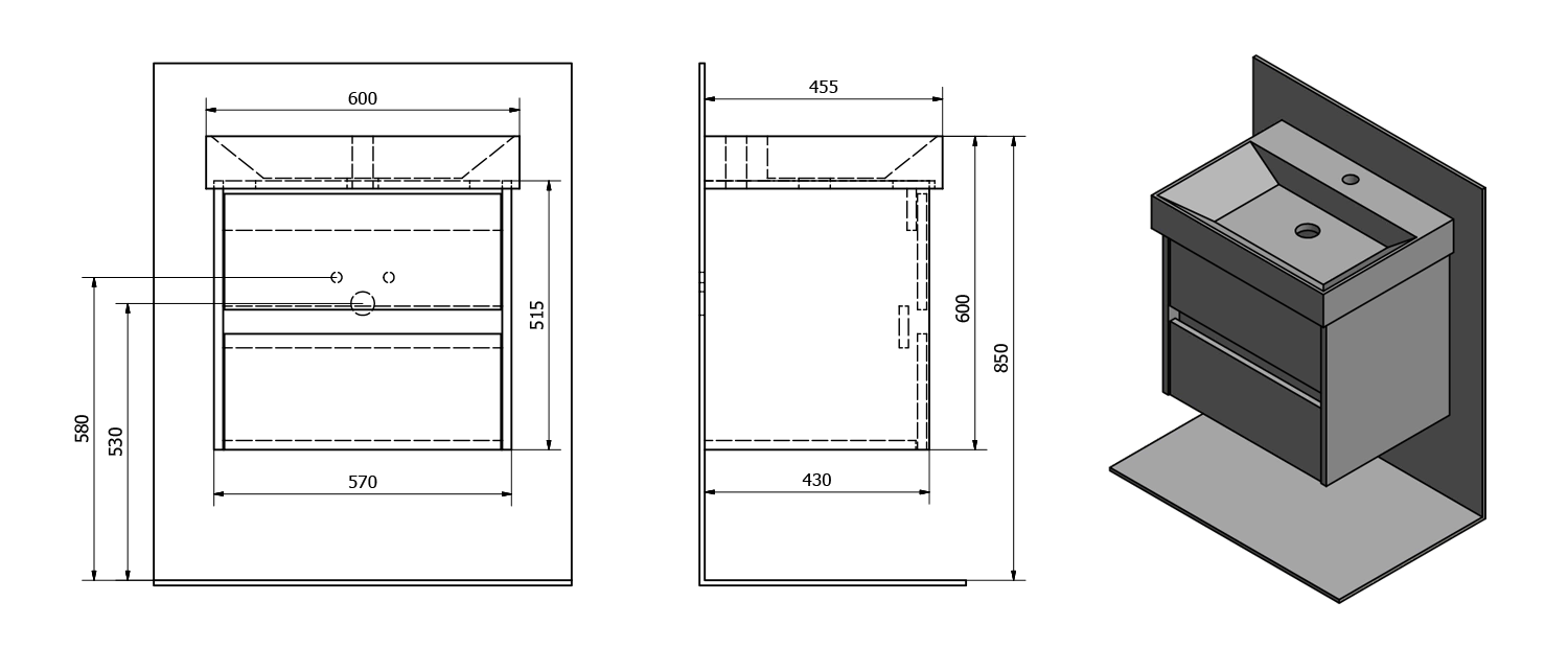 Furniture is equipped travels drawers with slow release and an automatic closing movement drawers. No more noisy closing.
