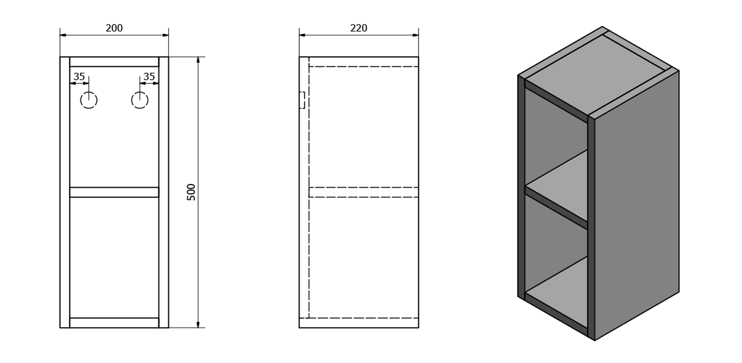 TS025-3535 TREOS polcos szekrény, felső, 20x50x22cm, matt fekete