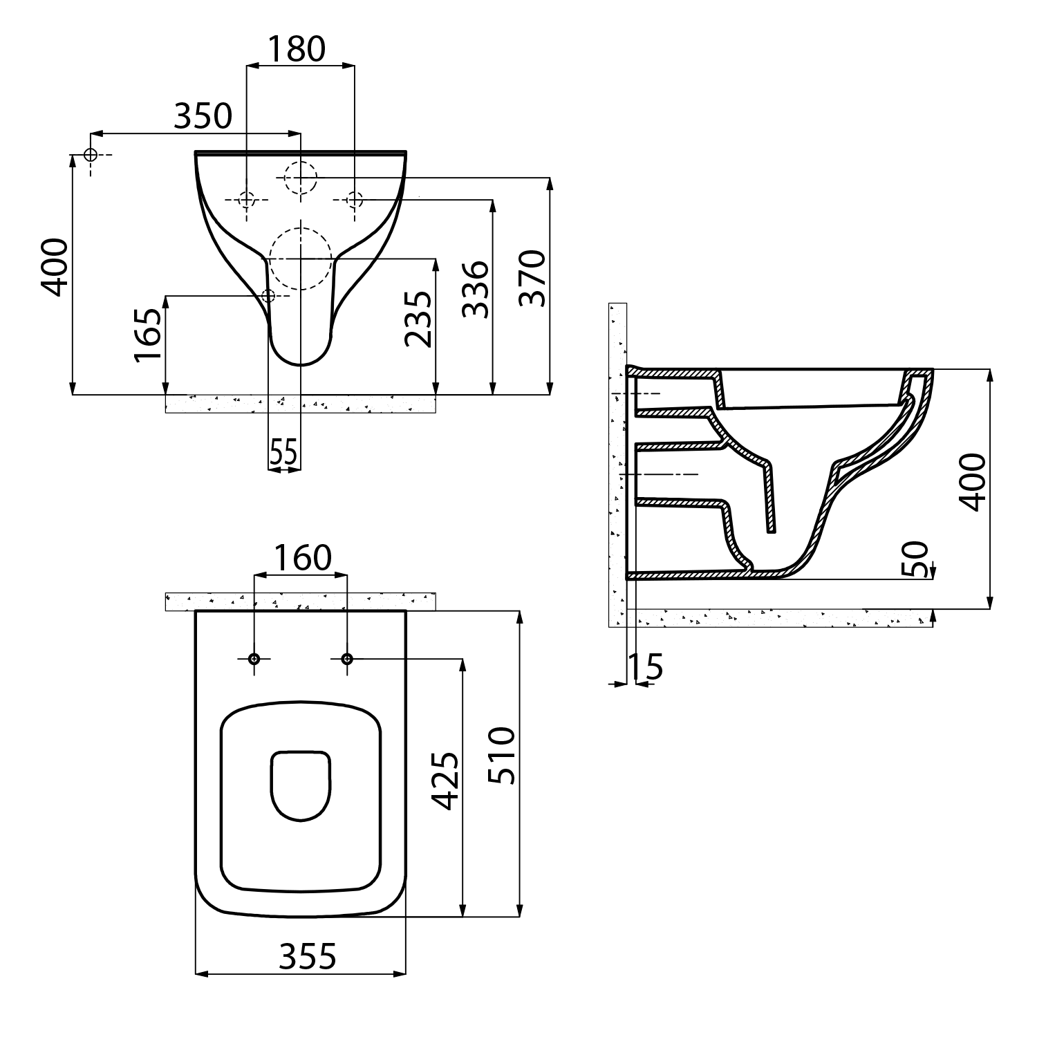 AQUALINE CREAVIT BENE Fali WC, 35,5x51cm (BN320)