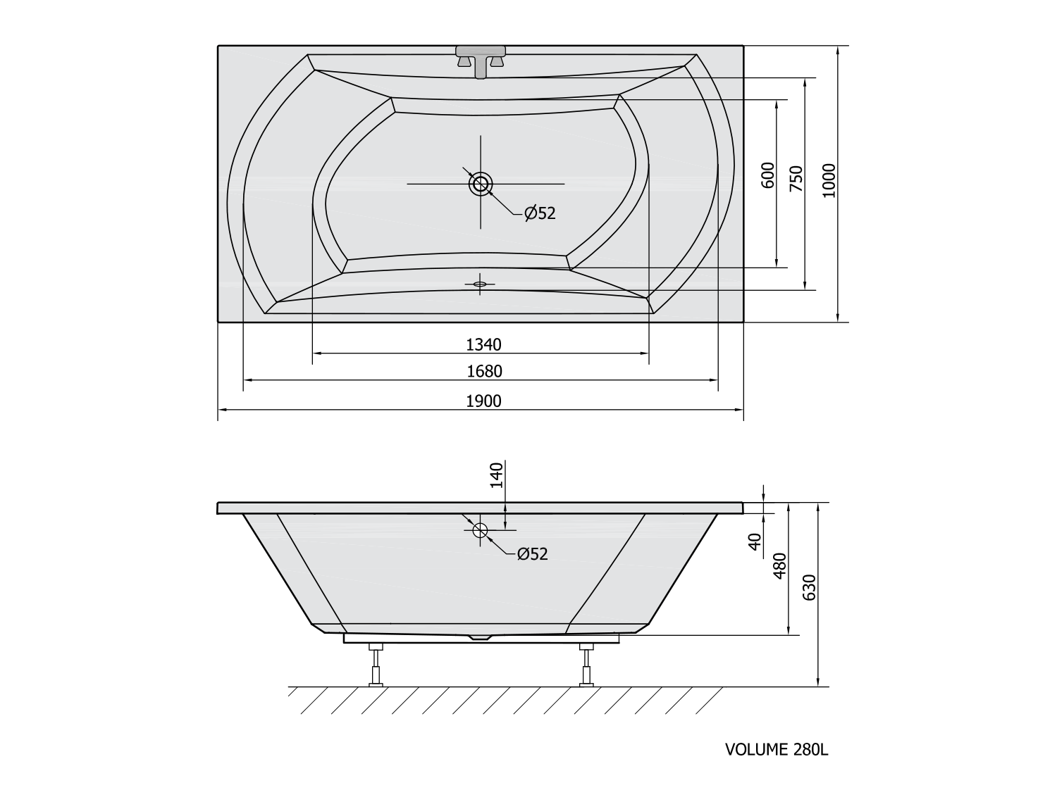 FR190100 POLYSAN lábszerkezet kádhoz, 190x100cm