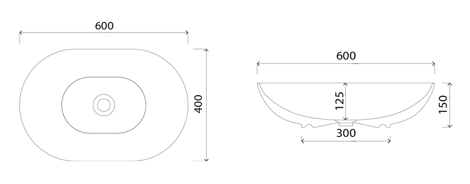 883411 GSI PURA kerámiamosdó, pultra helyezhető, 60x16x37cm, ExtraGlaze