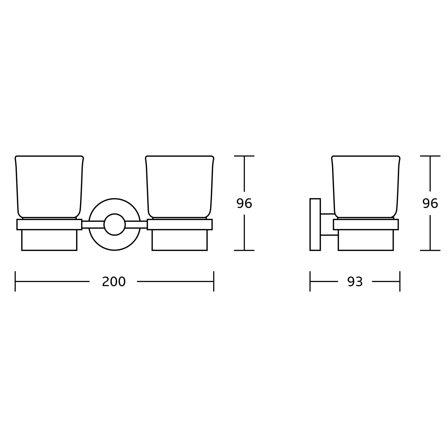 AQUALINE SAMBA dupla pohártartó, tejüveg/fekete (SB205)