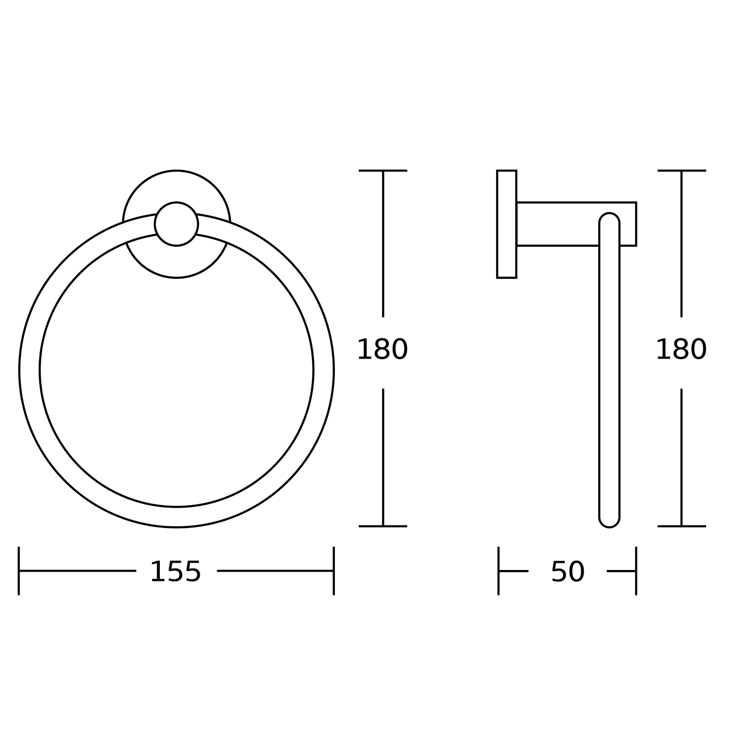 SB206 AQUALINE SAMBA törölközőtartó, kör, fekete