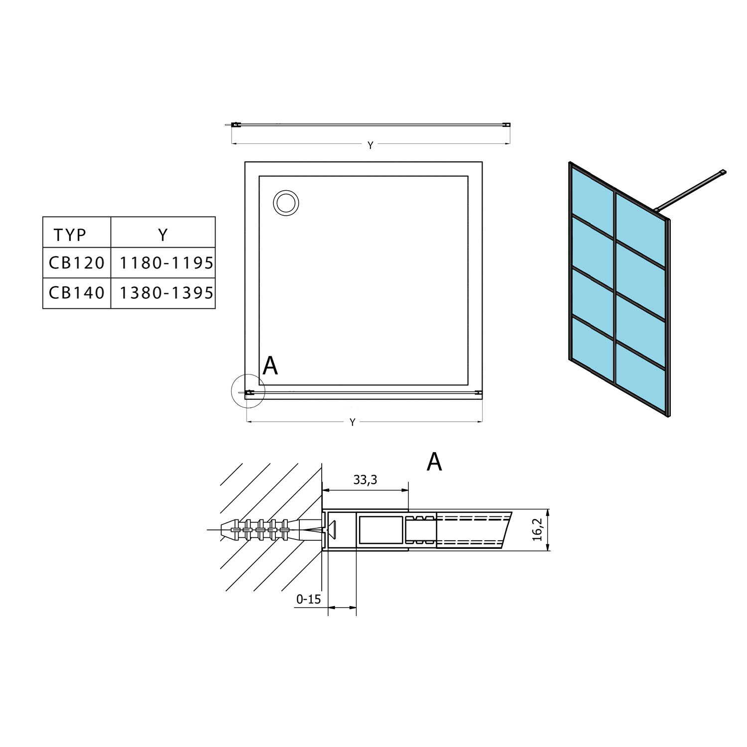 CB140 GELCO CURE BLACK fix zuhanyfal, 1400mm, transzparent üveg, matt fekete profil